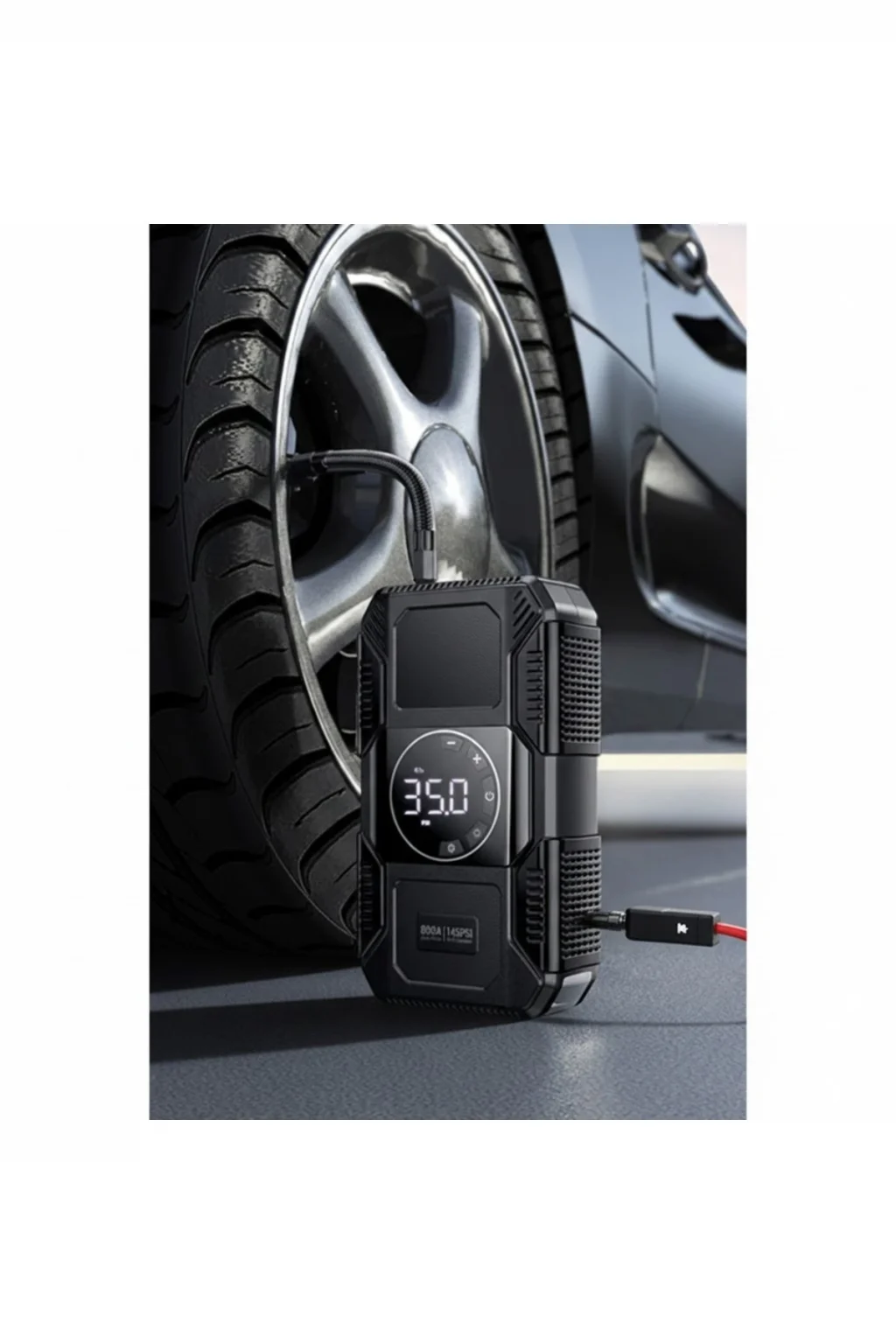 ✅Dahili 145 PSI Hava Kompresörü Araç lastikleri, motosiklet, bisiklet ve spor ekipmanlarını yaklaşık10 dakikaiçinde şişirebilen güçlü hava pompası ile pratik kullanım sunar.