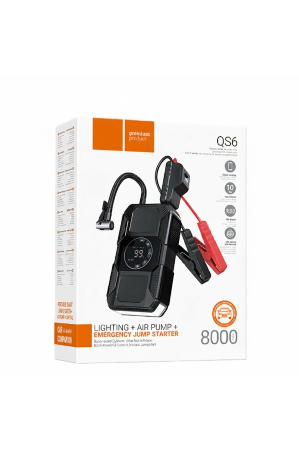 ✅8000 mAh Yüksek Kapasiteli Batarya Tek şarjla birden fazla akü takviyesi yapabilir; aynı zamanda telefon ve tabletlerinizi şarj edebileceğiniz güçlü bir powerbank olarak kullanılabilir.