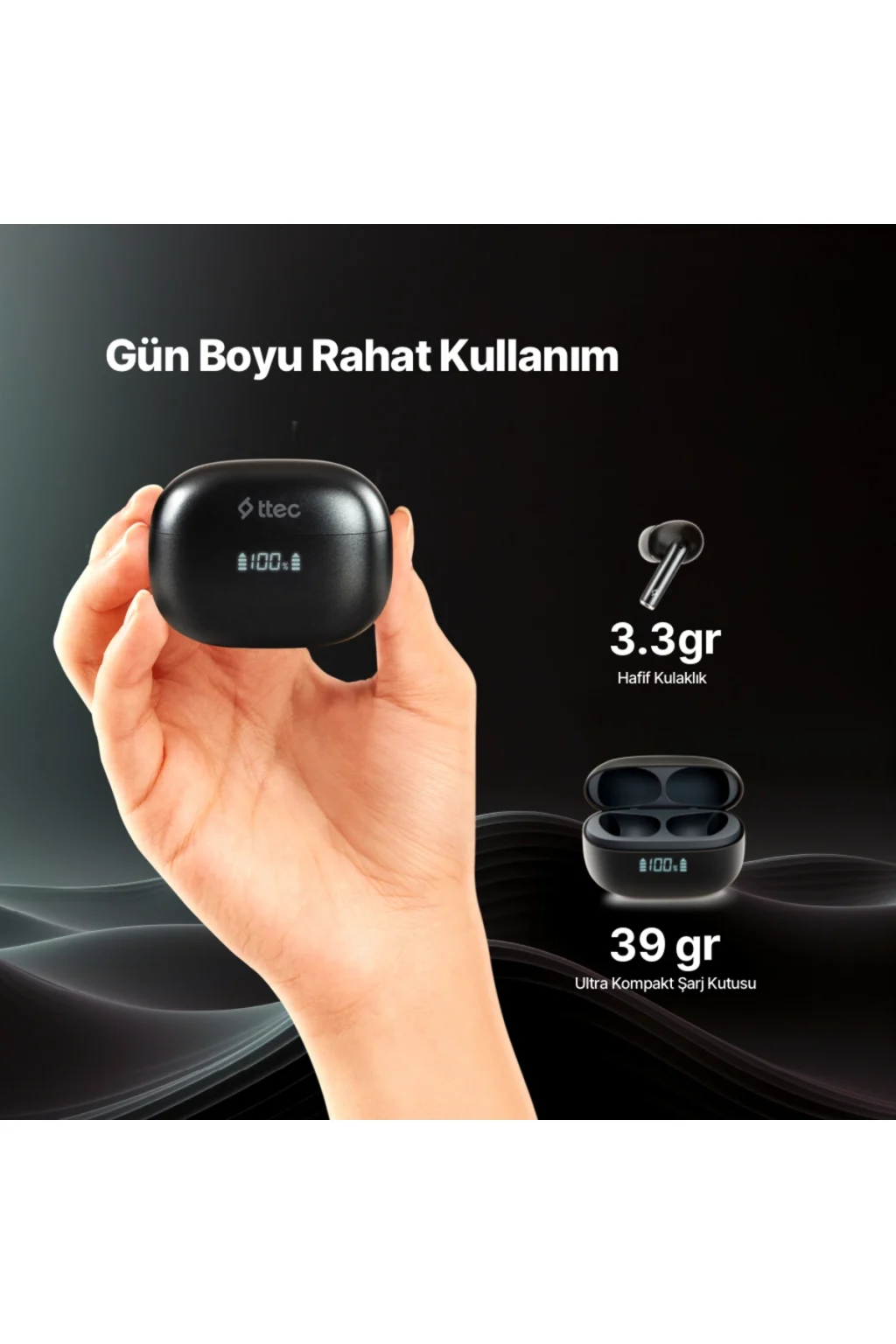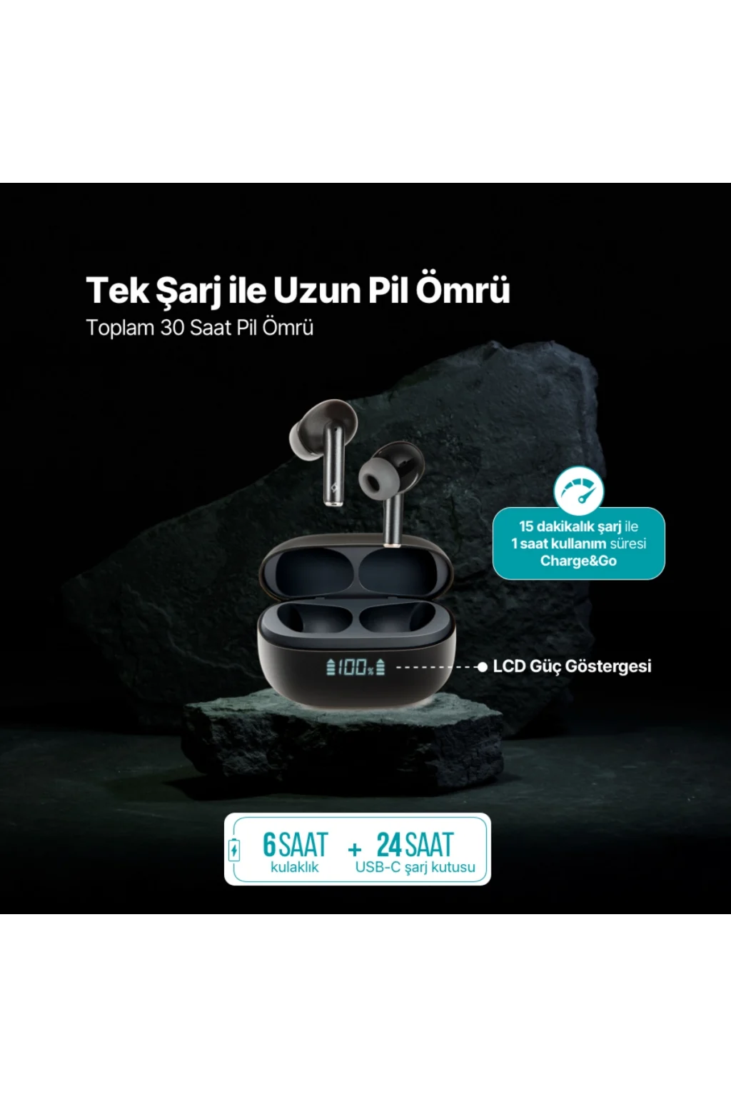 ANC Özellikli Dijital Dokunmatik Ekranlı Kablosuz Kulak içi Silikonlu Bluetooth Kulaklık (LİSANSLI)