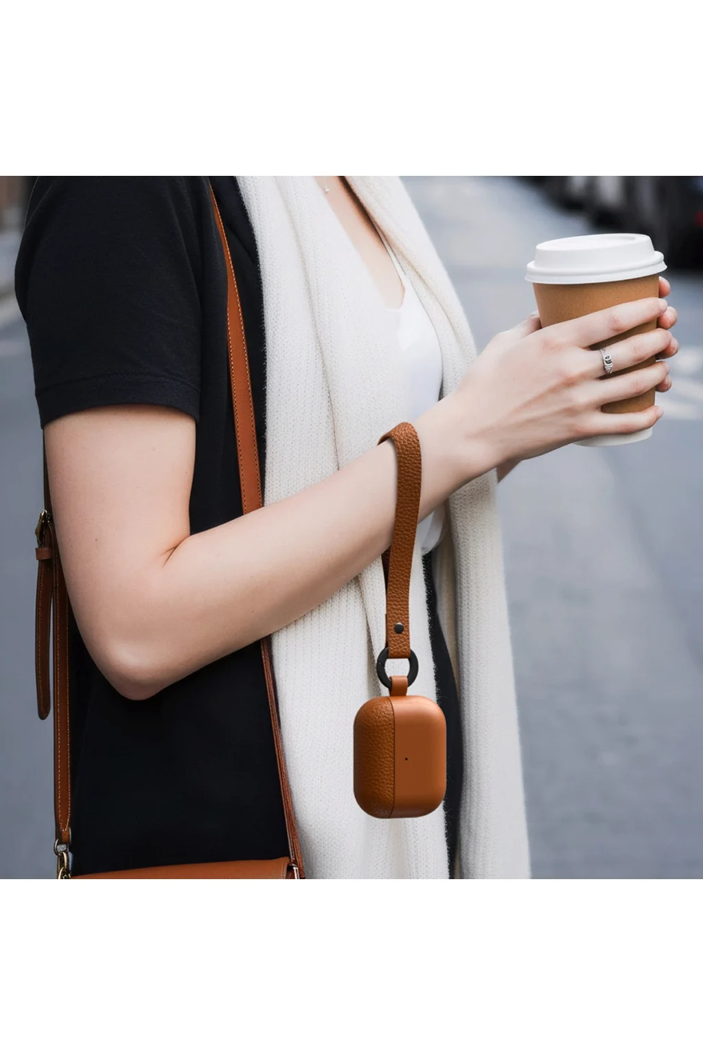 AirPods Pro 3 Uyumlu Glamour Classique Serisi Deri Tasarımlı Kapak Kahverengi