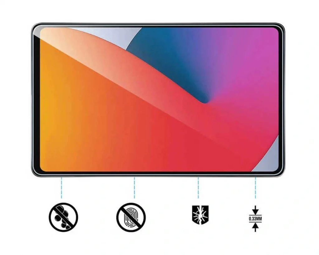 Tempered Glass:Kimyasal işlemlerle güçlendirilmiş, çok yüksek derecedeki darbelere dayanıklı camdan üretilmiştir. Tabletinizi diğer tüm ekran koruyucu filmlerden daha iyi korur.