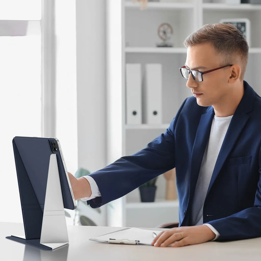 Amazing Thing Matte Pro Mag Folio, günlük yaşamın her anında şıklığı ve fonksiyonelliği bir araya getiriyor. Katlanabilir yapısı, cihazınızı hem yatay hem de dikey pozisyonda kullanmanıza olanak tanır. Bu özellik, ister video izlerken, ister iş toplantılarında not alırken veya dijital sanat eserlerinizi oluştururken size konfor sunar. İnce ve minimalist tasarımı sayesinde iPad’inizin estetik görünümünü tamamlar.