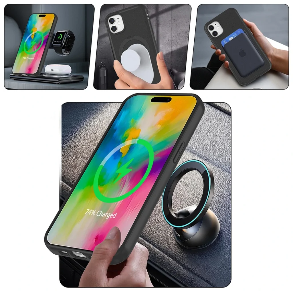 M-safe uyumlu yapısıyla kablosuz şarjı destekleyen bu kılıf, telefonunuzu çıkarma derdi olmadan hızlıca şarj etmenizi sağlar. Ayrıca arka kısmında bulunan stand özelliği sayesinde cihazınızı ister yatay ister dikey konumda sabitleyebilirsiniz. Film izlemek, görüntülü görüşme yapmak ya da sosyal medyada gezinmek artık çok daha pratik.