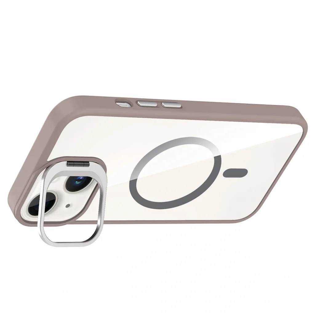 iPhone 13 Kılıf Standlı ve Kamera Lens Hediyeli M-Safe Şarj Özellikli Zore Etro Kapak