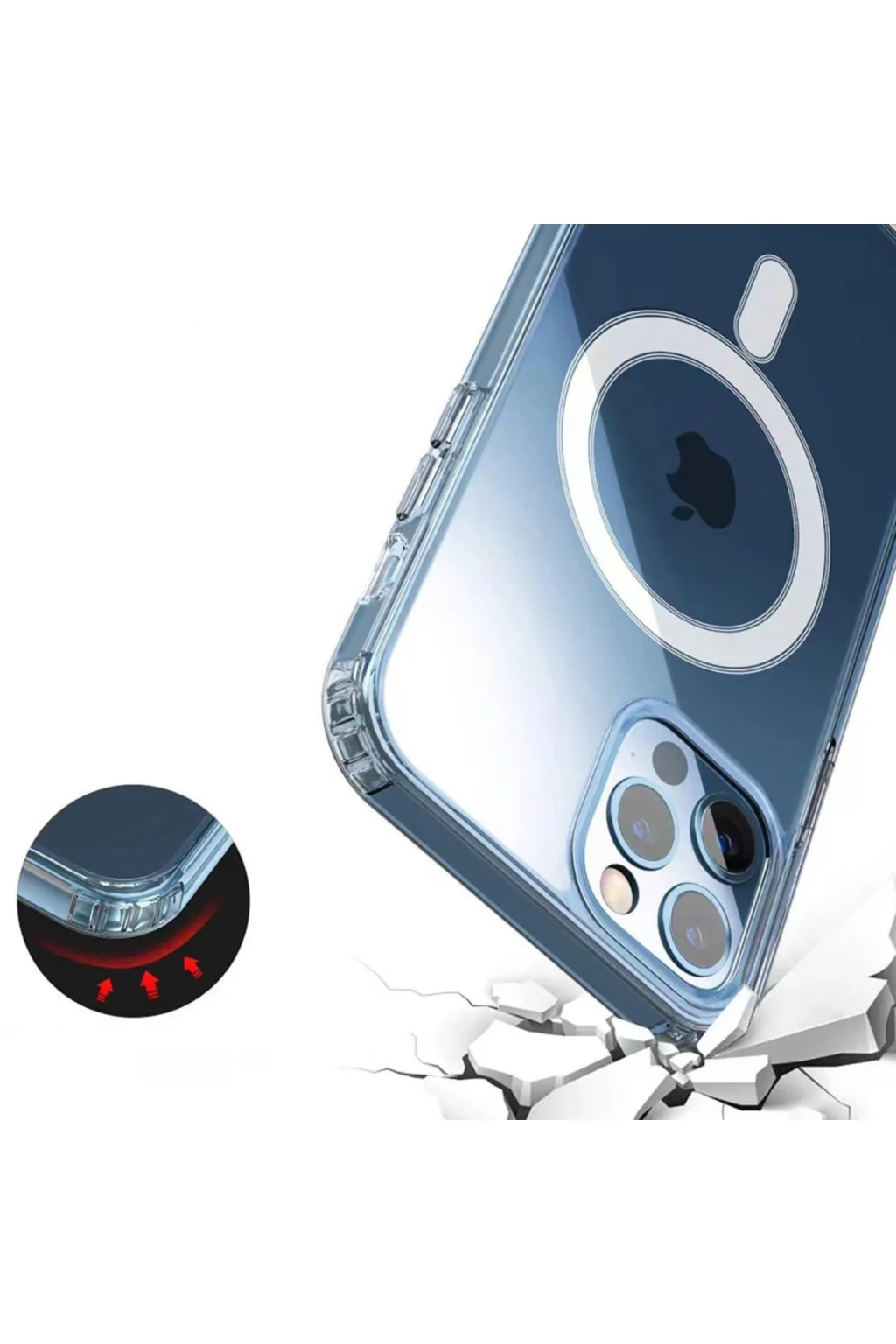 Magsafe Şarj Özellikli Şeffaf Sert PC Embos Kapak