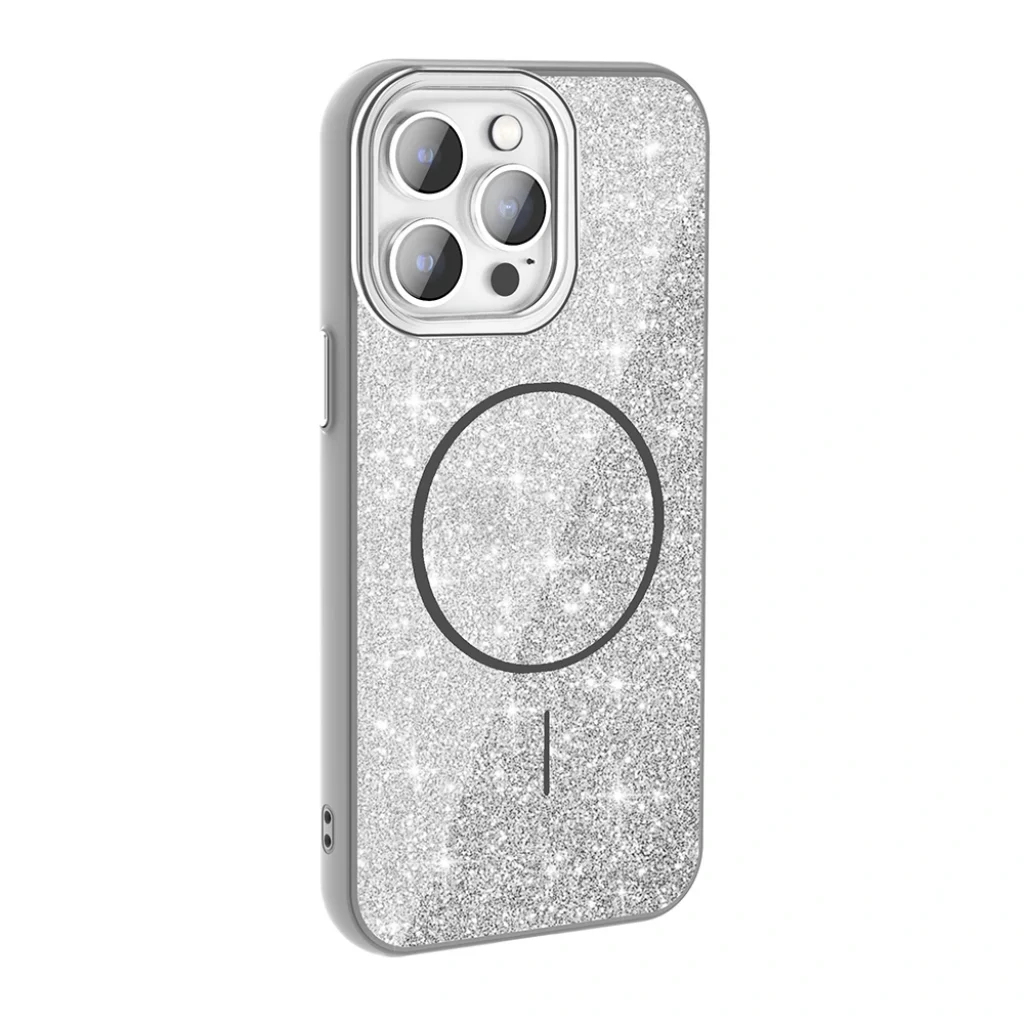 Bu şık telefon kılıfı, zarafeti ve korumayı birleştiriyor. Magsafe uyumlu tasarımı ile simli yüzeyi dikkat çekerken, cihazınızı çiziklerden ve darbelere karşı güvenle korur. Hafif ve ince yapısı, telefonunuzun estetik görünümünü koruyarak günlük kullanım için idealdir.