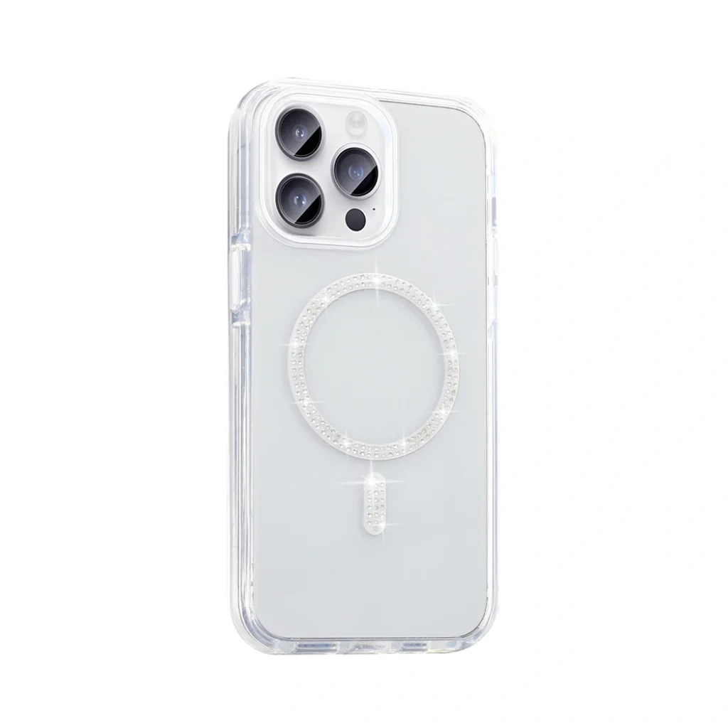 Şıklığı ve işlevselliği bir araya getiren bu kılıf, taşlı MagSafe halkasıyla dikkatleri üzerine çekiyor. Transparan yapısıyla cihazınızın orijinal rengini sergilemenize olanak tanırken, zarif taş detayları sayesinde her ortamda tarzınızı yansıtmanıza yardımcı olur. Hem ofiste hem de özel davetlerde, telefonunuzu güvenle kullanmanın yanında şıklığınızdan da ödün vermezsiniz.