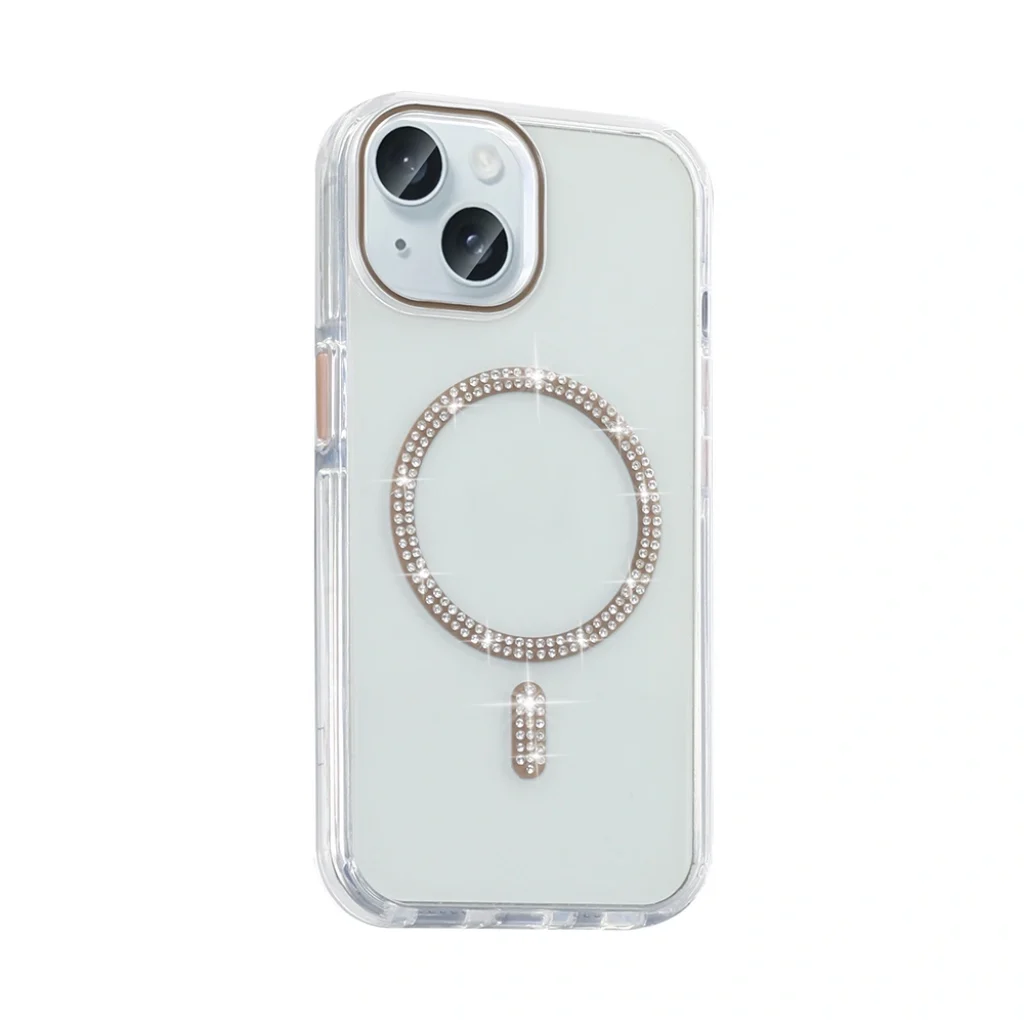 Şıklığı ve işlevselliği bir araya getiren bu kılıf, taşlı MagSafe halkasıyla dikkatleri üzerine çekiyor. Transparan yapısıyla cihazınızın orijinal rengini sergilemenize olanak tanırken, zarif taş detayları sayesinde her ortamda tarzınızı yansıtmanıza yardımcı olur. Hem ofiste hem de özel davetlerde, telefonunuzu güvenle kullanmanın yanında şıklığınızdan da ödün vermezsiniz.