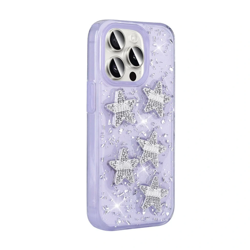 Kalp, yıldız ve fiyonk şekilleriyle birlikte simli tasarım, parıltılı şık arka yüzey yapısı.