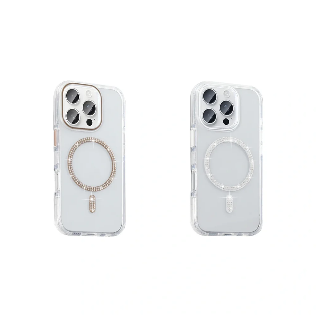 Şıklığı ve işlevselliği bir araya getiren bu kılıf, taşlı MagSafe halkasıyla dikkatleri üzerine çekiyor. Transparan yapısıyla cihazınızın orijinal rengini sergilemenize olanak tanırken, zarif taş detayları sayesinde her ortamda tarzınızı yansıtmanıza yardımcı olur. Hem ofiste hem de özel davetlerde, telefonunuzu güvenle kullanmanın yanında şıklığınızdan da ödün vermezsiniz.
