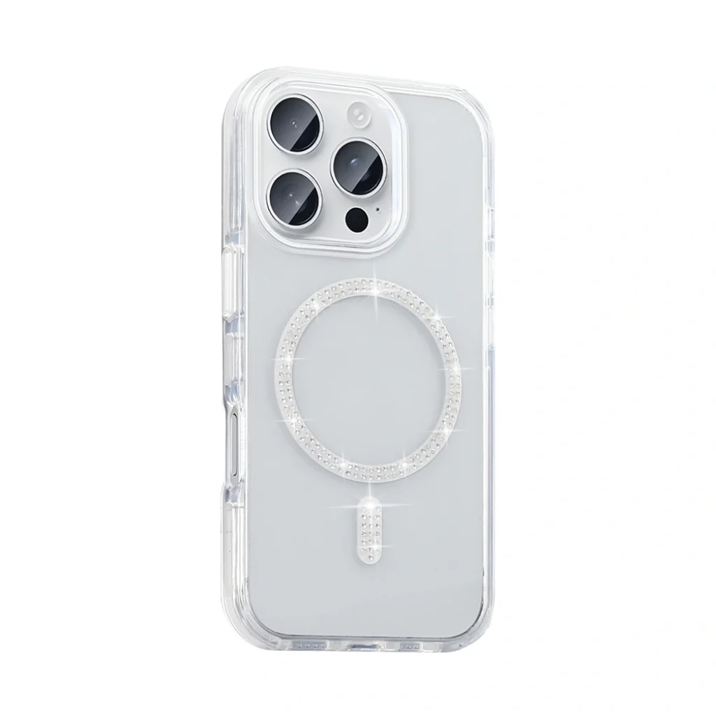 Şıklığı ve işlevselliği bir araya getiren bu kılıf, taşlı MagSafe halkasıyla dikkatleri üzerine çekiyor. Transparan yapısıyla cihazınızın orijinal rengini sergilemenize olanak tanırken, zarif taş detayları sayesinde her ortamda tarzınızı yansıtmanıza yardımcı olur. Hem ofiste hem de özel davetlerde, telefonunuzu güvenle kullanmanın yanında şıklığınızdan da ödün vermezsiniz.