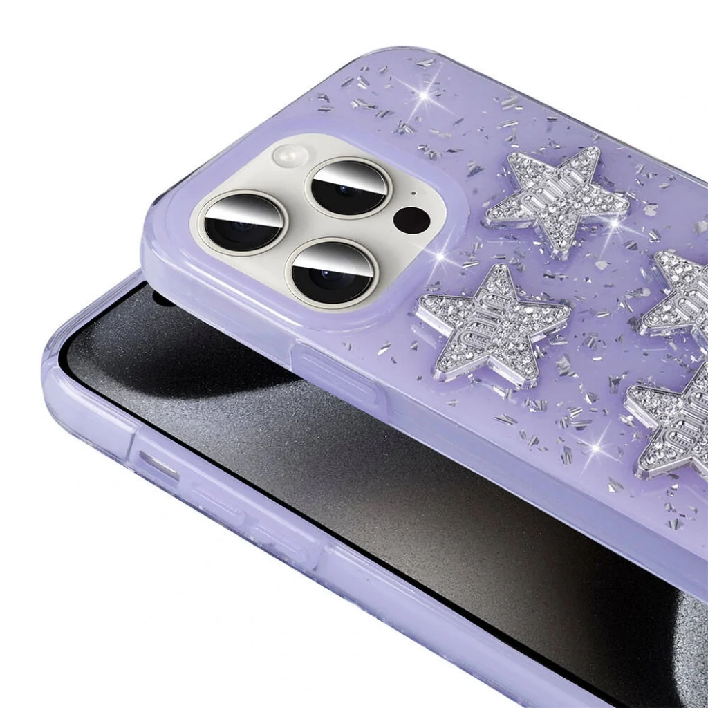 iPhone 15 Pro Max Kılıf Airbagli Simli Arka Yüzey Işıltı Silikon Kapak