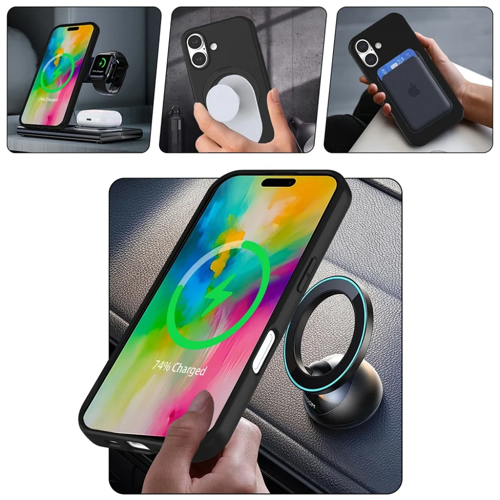 M-safe uyumlu yapısıyla kablosuz şarjı destekleyen bu kılıf, telefonunuzu çıkarma derdi olmadan hızlıca şarj etmenizi sağlar. Ayrıca arka kısmında bulunan stand özelliği sayesinde cihazınızı ister yatay ister dikey konumda sabitleyebilirsiniz. Film izlemek, görüntülü görüşme yapmak ya da sosyal medyada gezinmek artık çok daha pratik.