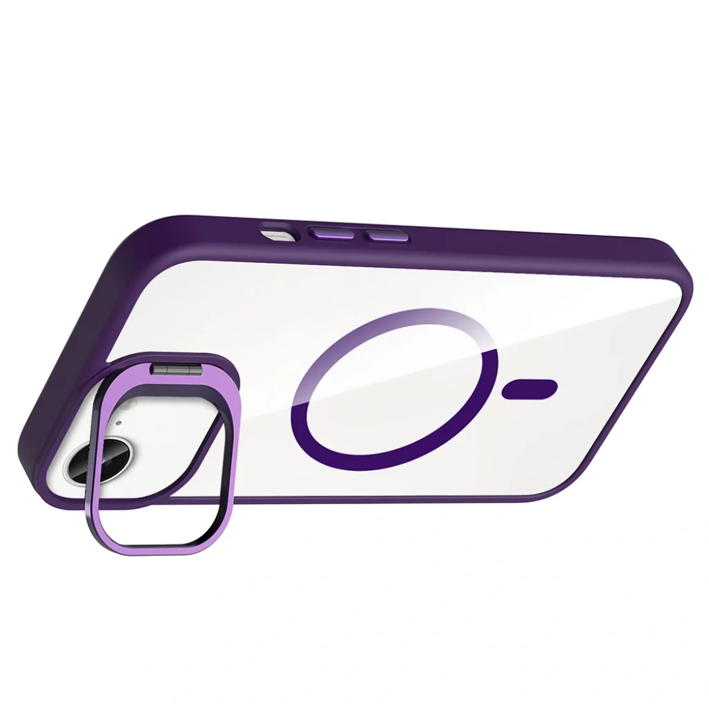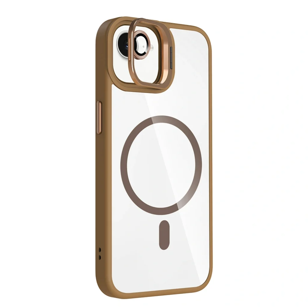 iPhone 16E Kılıf Standlı ve Kamera Lens Hediyeli M-Safe Şarj Özellikli Zore Etro Kapak