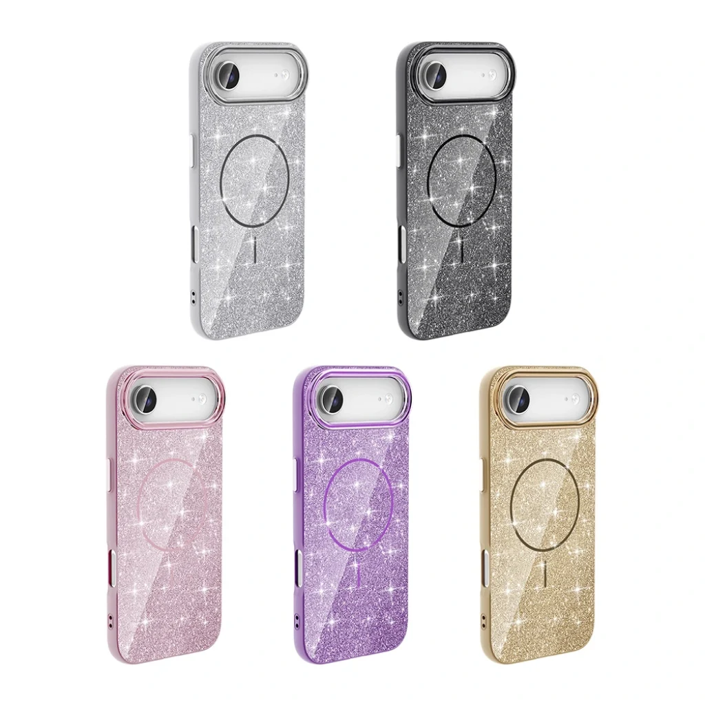iPhone 17 Air Kılıf M-safe Şarj Özellikli Parlayan Simli Okso Kapak