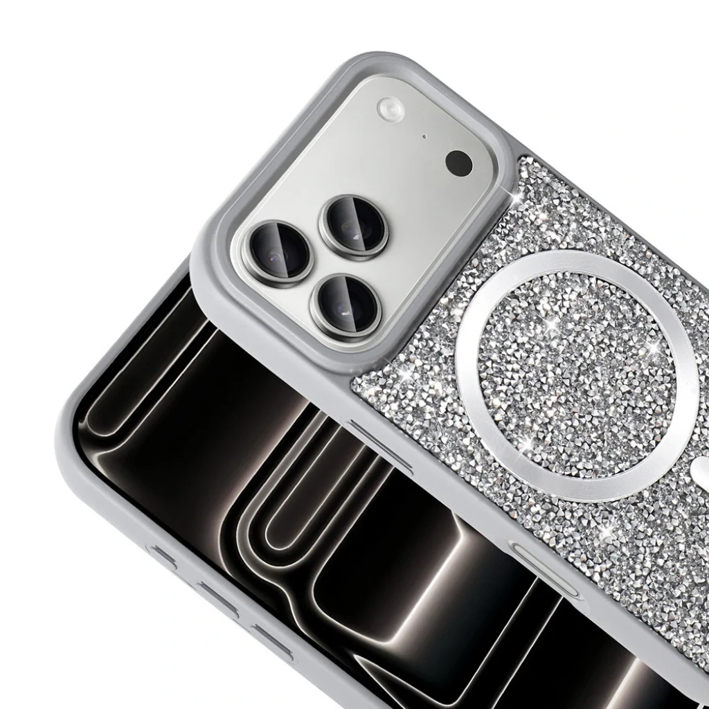 iPhone 17 Pro Kılıf Pırlanta Tasarımlı Magsafe Şarj Özellikli Zore Mozaik Silikon Kapak