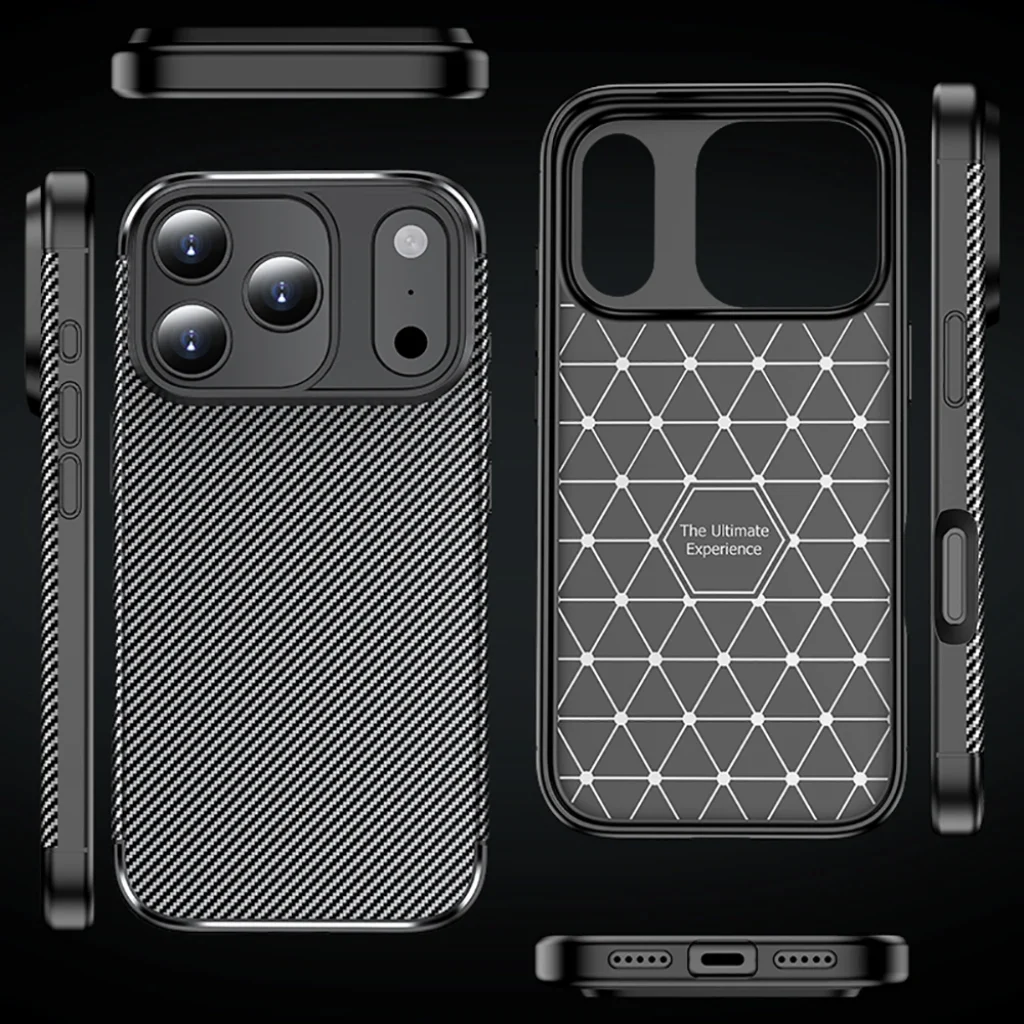 iPhone 17 Pro Max Kılıf M-Safe Şarj Özellikli Karbon Fiber Görünümlü Truva Silikon Kapak