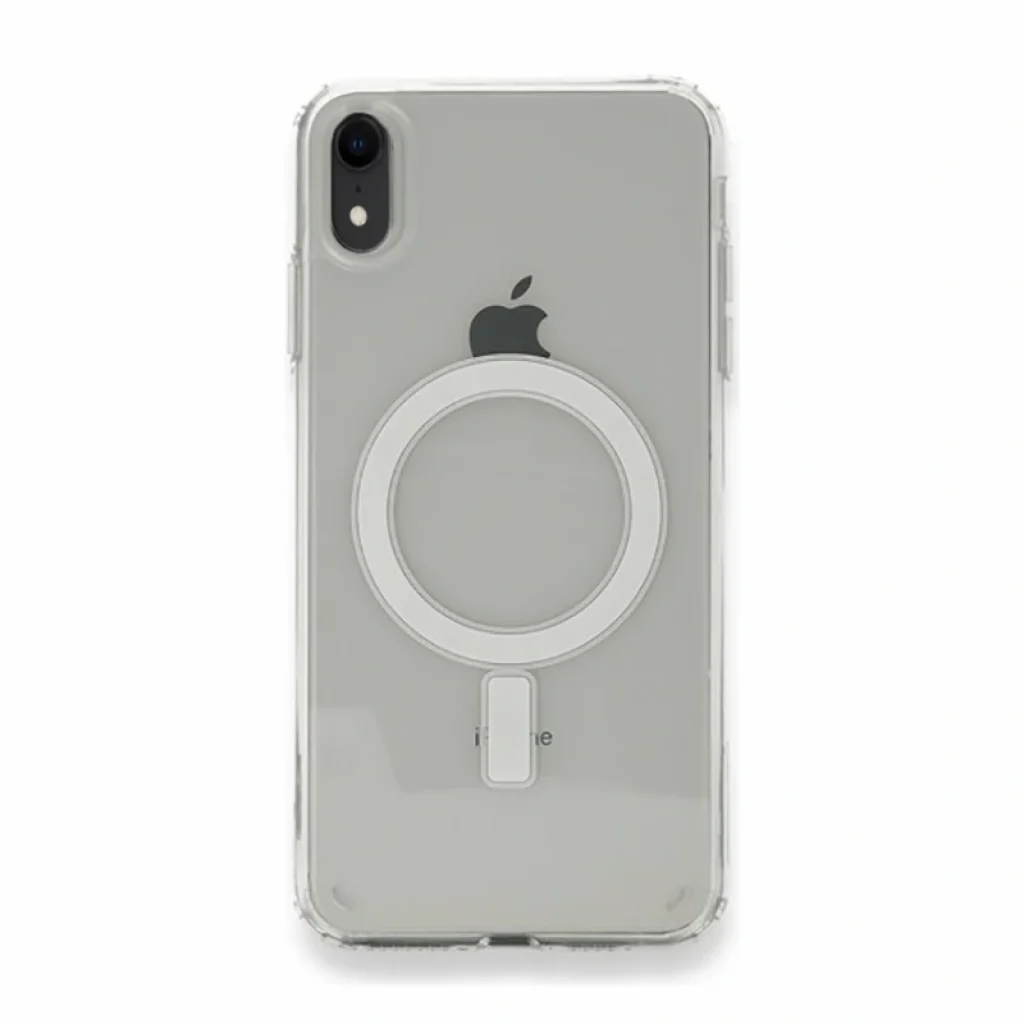 iPhone XR 6.1 Kılıf M-safe Şarj Özellikli Şeffaf Sert PC Embos Kapak