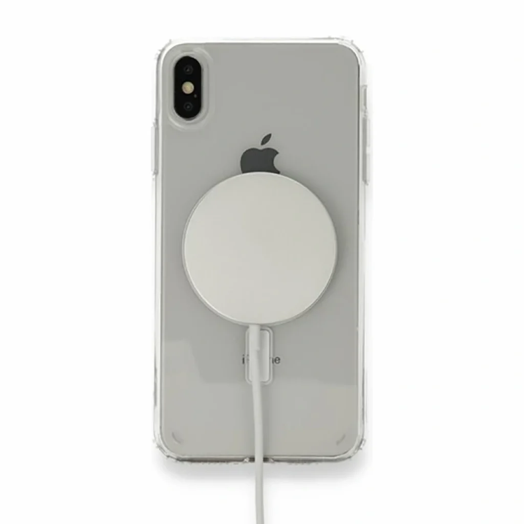 iPhone XS 5.8 Kılıf M-safe Şarj Özellikli Şeffaf Sert PC Embos Kapak