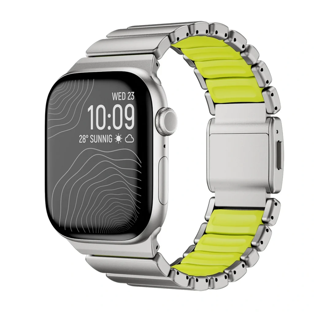 Saf titanyumdan üretilen bu kordon, paslanmaz çeliğe göre çok daha hafif ve sağlam bir yapıya sahiptir. Yüksek gerilme direncine sahip silikon iç yüzeyi sayesinde uzun süreli kullanımlarda bile maksimum konfor sunar. Pürüzsüz dokusu ve kir tutmayan yüzeyiyle her zaman yeni görünümünü korur.
