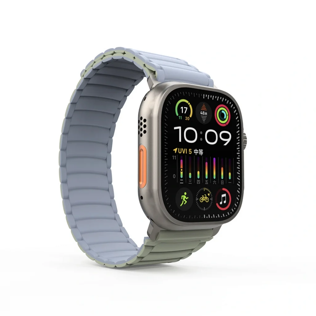 İki renkli silikon gövdeye sahip olan bu kordon, Watch'unuza yeni bir görünüm kazandırır. Şıklığı ve işlevselliği bir arada sunan tasarımı, saatinizin estetiğine katkıda bulunurken çizilmelere ve aşınmalara karşı dayanıklı yapısıyla uzun ömürlü kullanım sağlar.