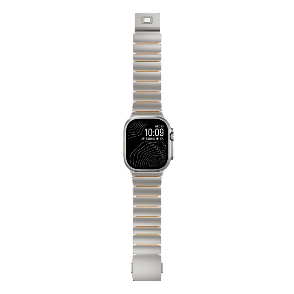 Saf titanyumdan üretilen bu kordon, paslanmaz çeliğe göre çok daha hafif ve sağlam bir yapıya sahiptir. Yüksek gerilme direncine sahip silikon iç yüzeyi sayesinde uzun süreli kullanımlarda bile maksimum konfor sunar. Pürüzsüz dokusu ve kir tutmayan yüzeyiyle her zaman yeni görünümünü korur.