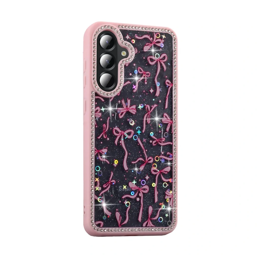 Bu özel kılıf, yalnızca güzelliğiyle değil, dayanıklılığıyla da ön planda. Darbelere karşı güçlendirilmiş silikon kenar yapısı sayesinde cihazınızı çizilmelere ve düşmelere karşı korur. Telefonun kamera kısmını çevreleyen taşlı çıkıntılı tasarım hem estetik duruşu artırır hem de lensinizi zeminden uzak tutarak korur. Özellikle çantanızda veya cebinizde taşıdığınızda cihazınız güvenli bir şekilde korunur.