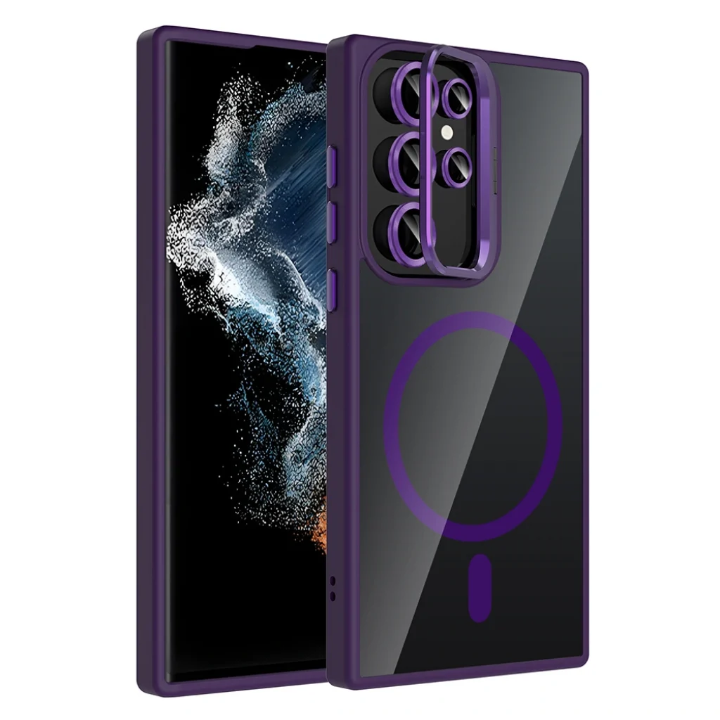 Samsung S22 Ultra Kılıf Standlı ve Kamera Lens Hediyeli M-Safe Şarj Özellikli Etro Kapak