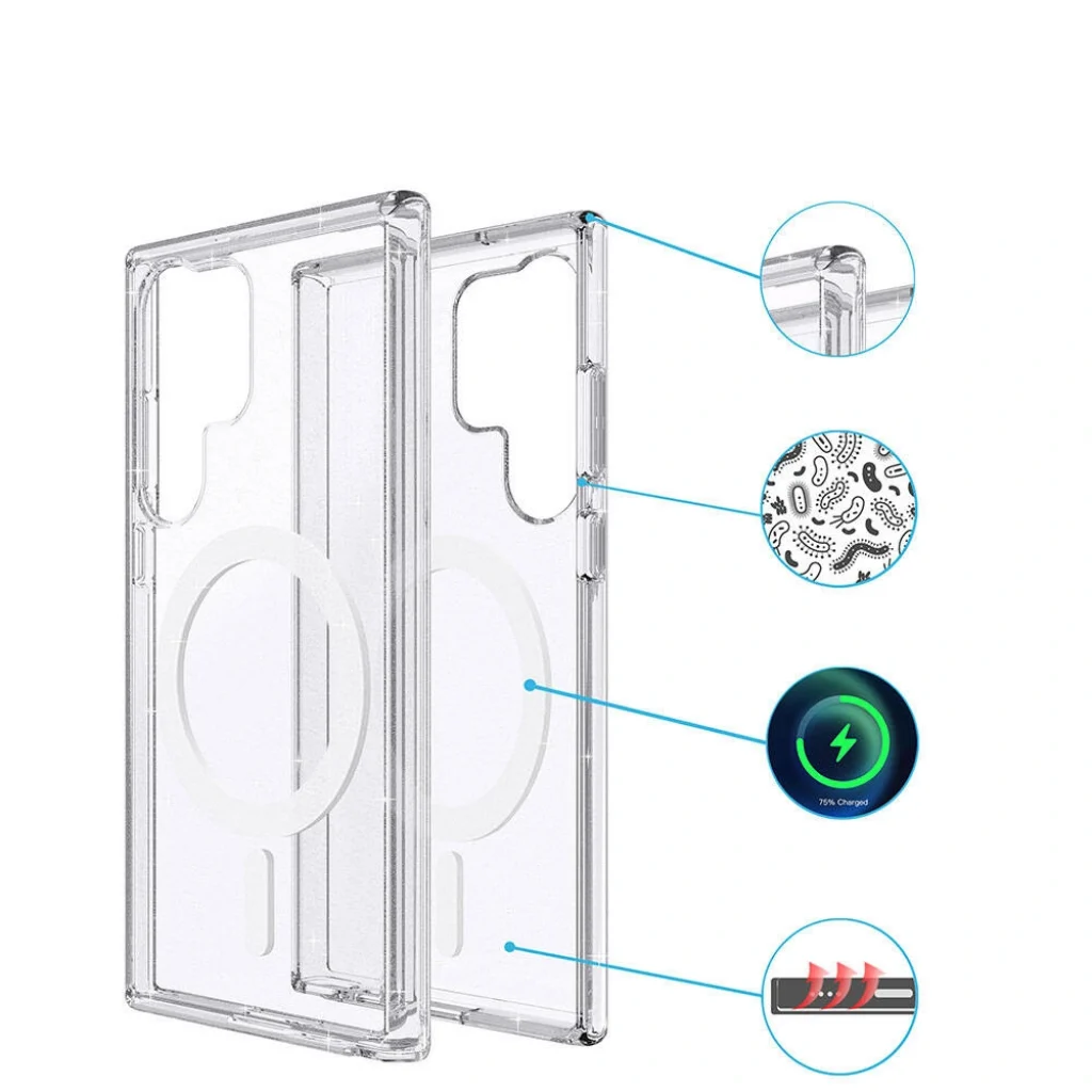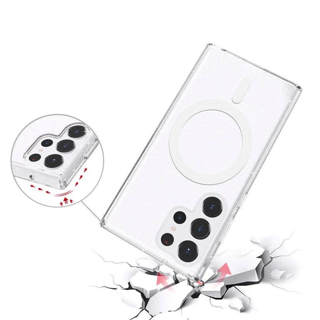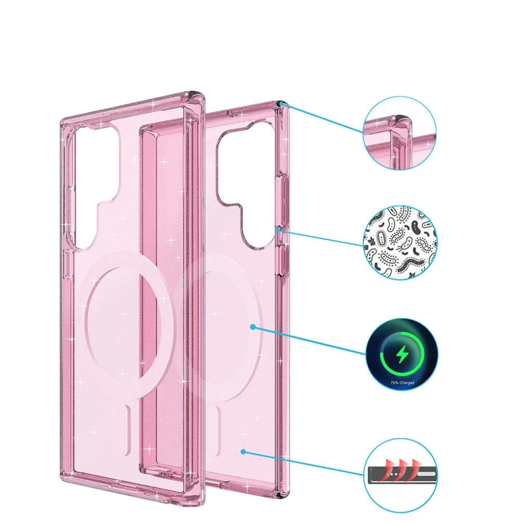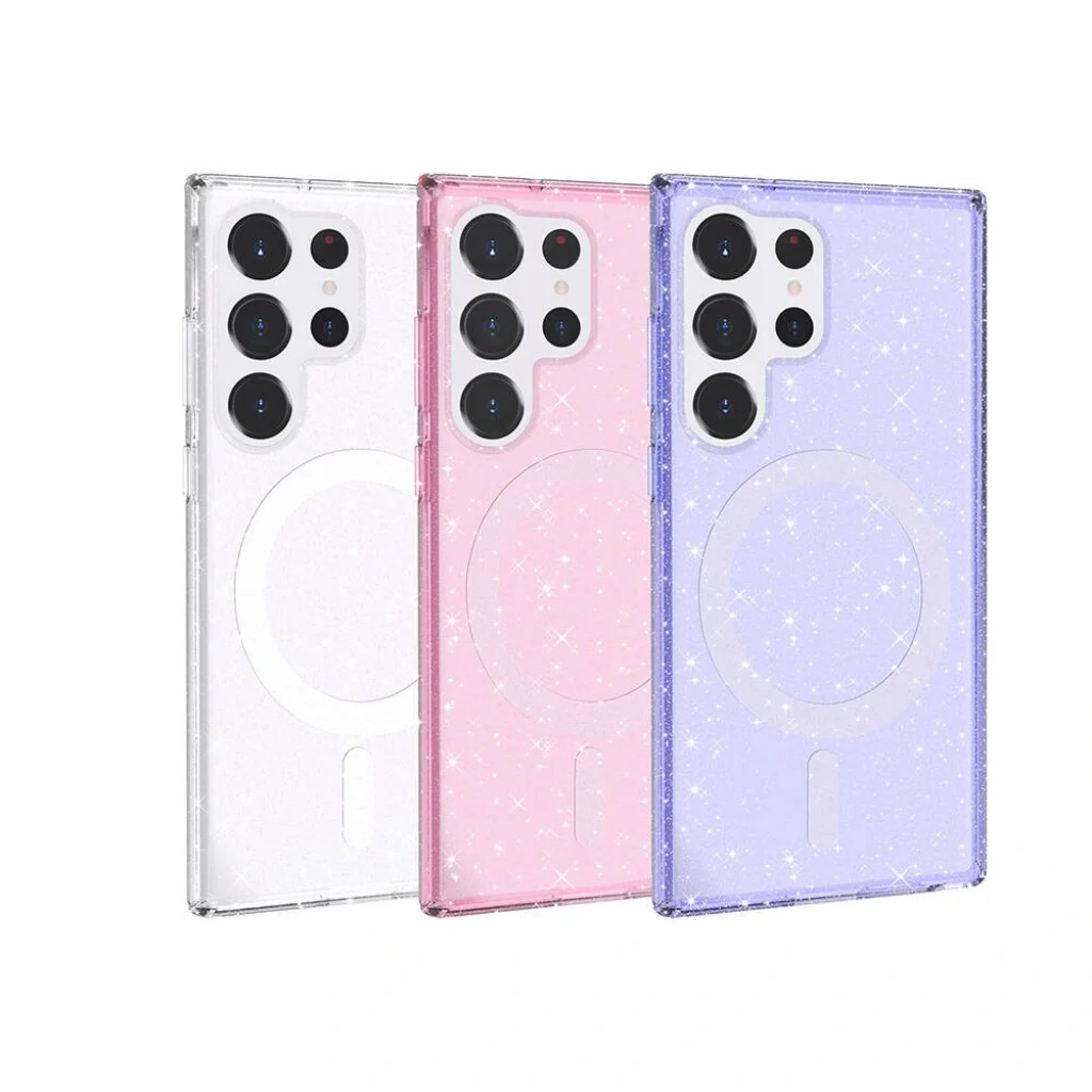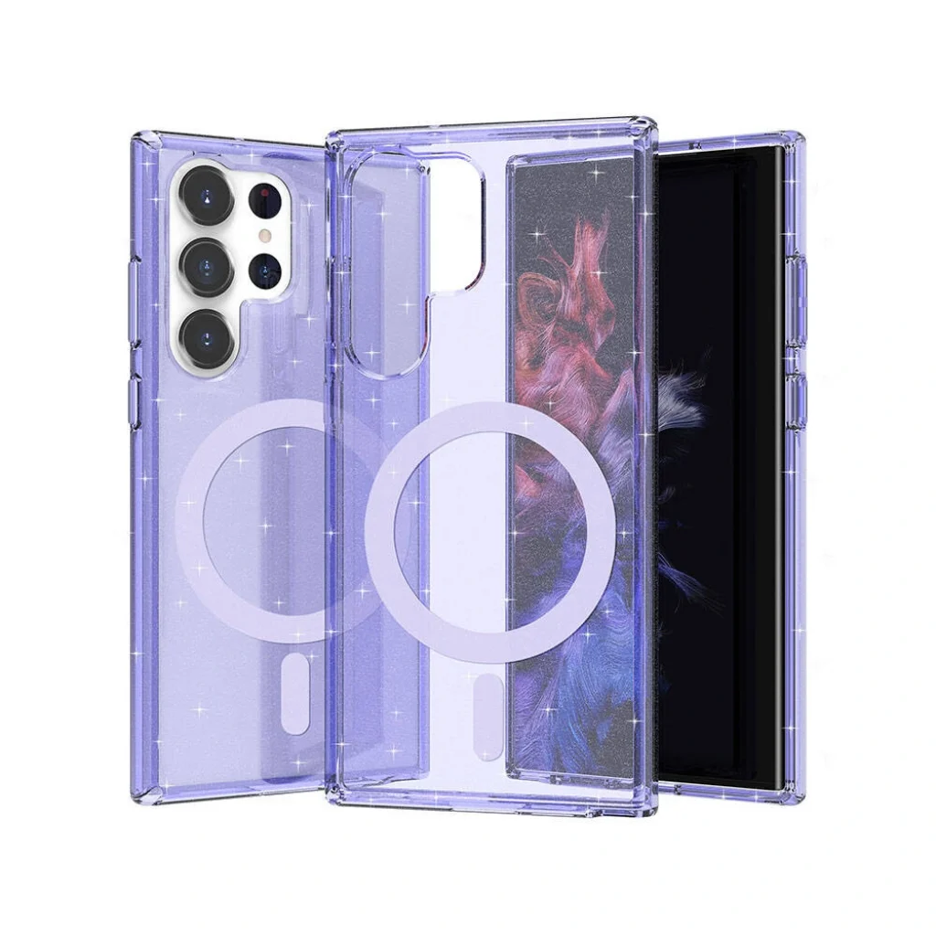 Galaxy S23 Ultra Kılıf Magsafe Şarj Özellikli Parlayan Simli Saydam Renkli Zore Allstar Kapak