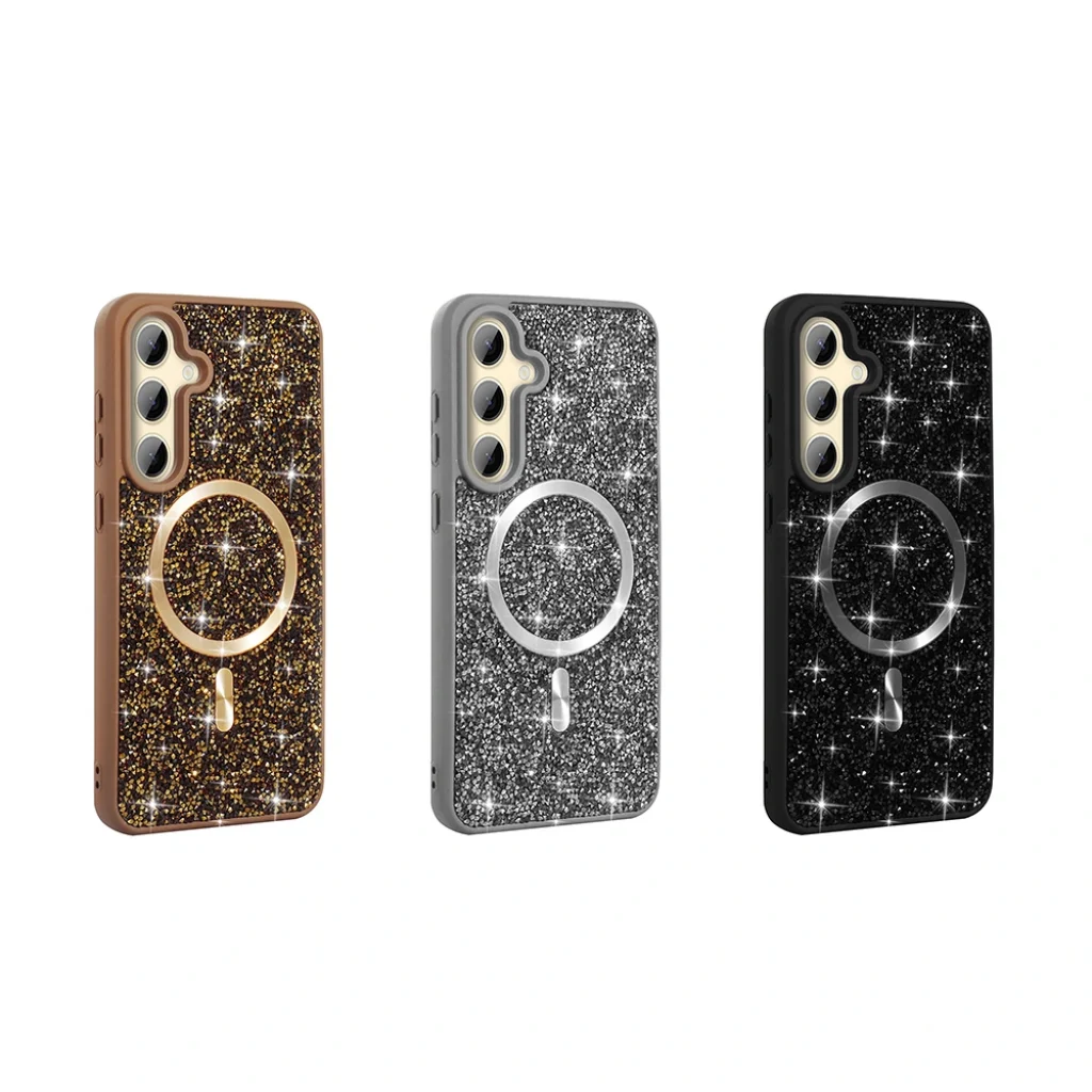 Galaxy S24 FE Kılıf Pırlanta Tasarımlı Magsafe Şarj Özellikli Zore Mozaik Silikon Kapak