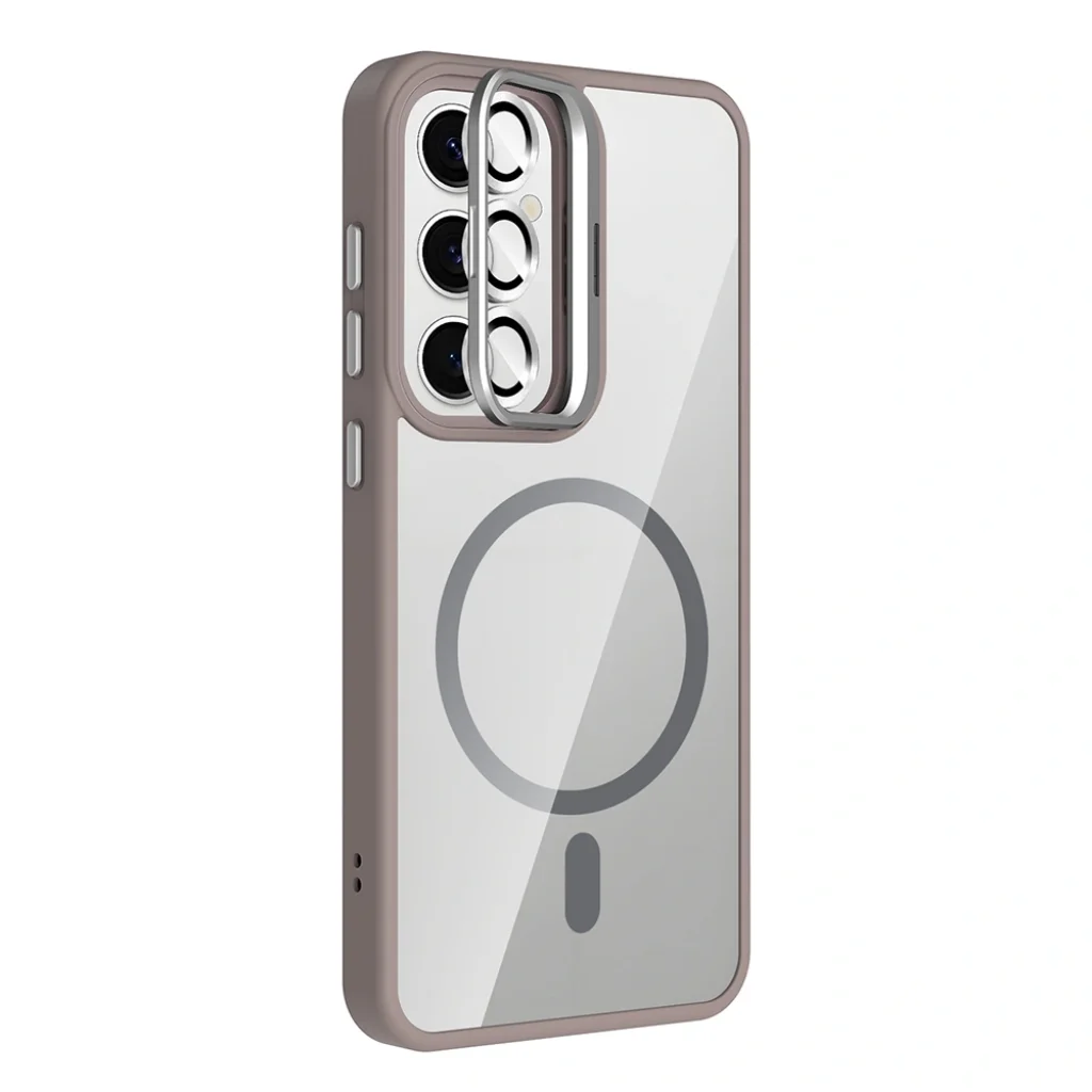 Samsung S24 Kılıf Standlı ve Kamera Lens Hediyeli M-Safe Şarj Özellikli Etro Kapak