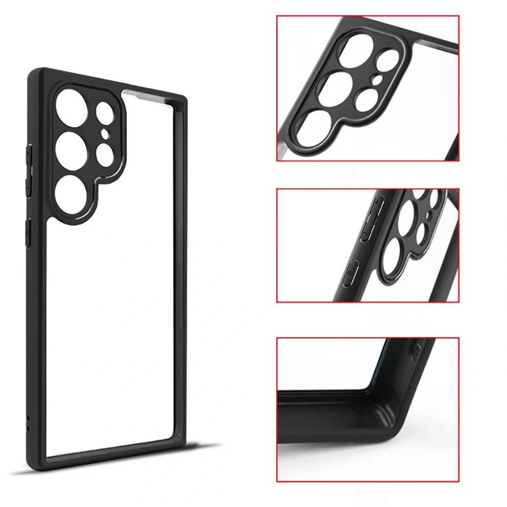 Samsung S24 Ultra Kılıf Kamera Korumalı Şeffaf Arka Yüzey New Roll Kapak