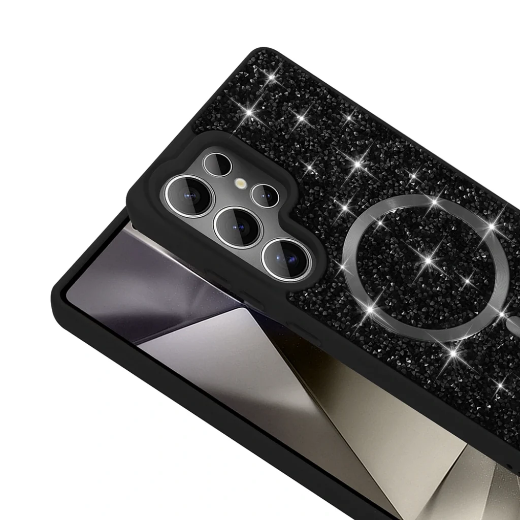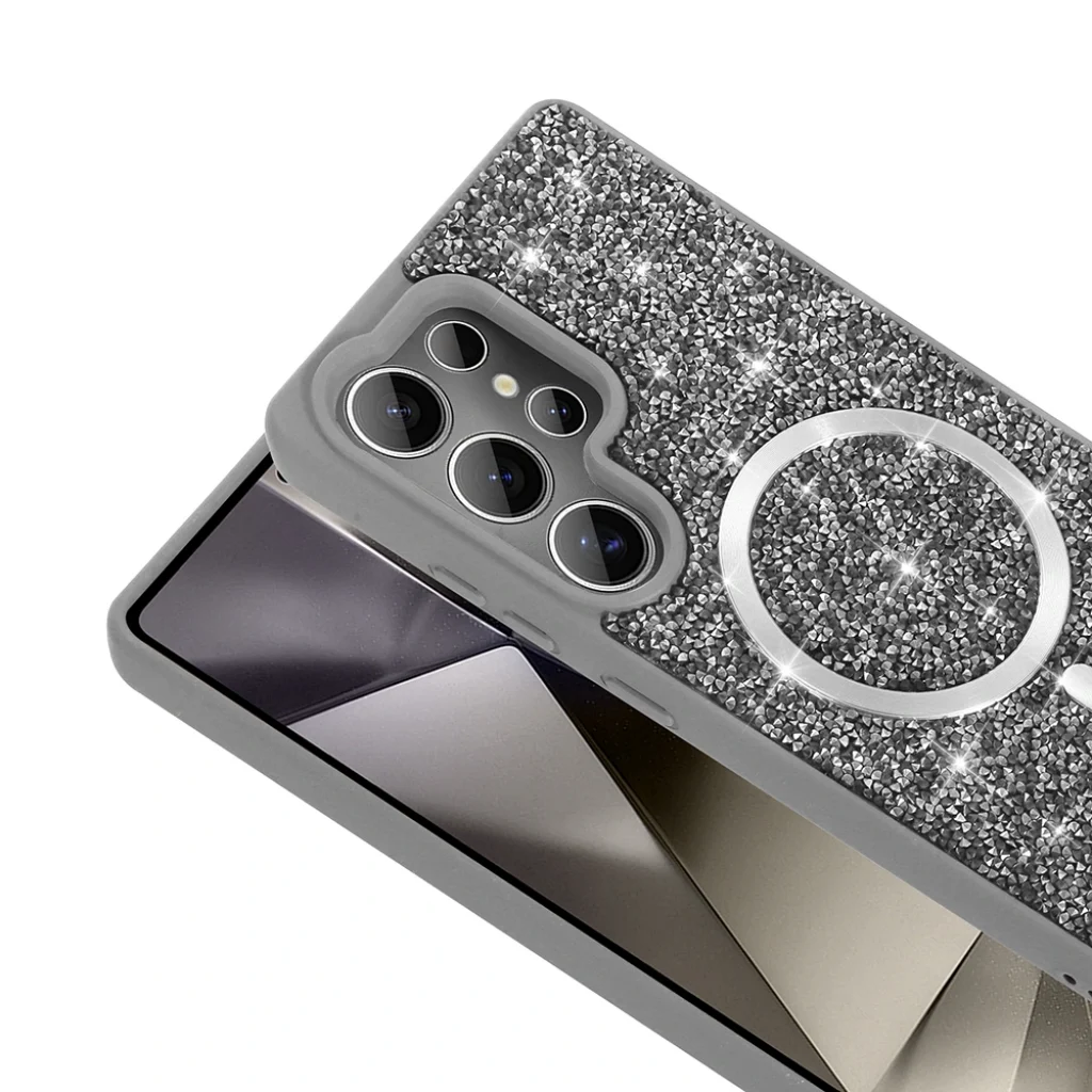 Galaxy S25 Ultra Kılıf Pırlanta Tasarımlı Magsafe Şarj Özellikli Zore Mozaik Silikon Kapak