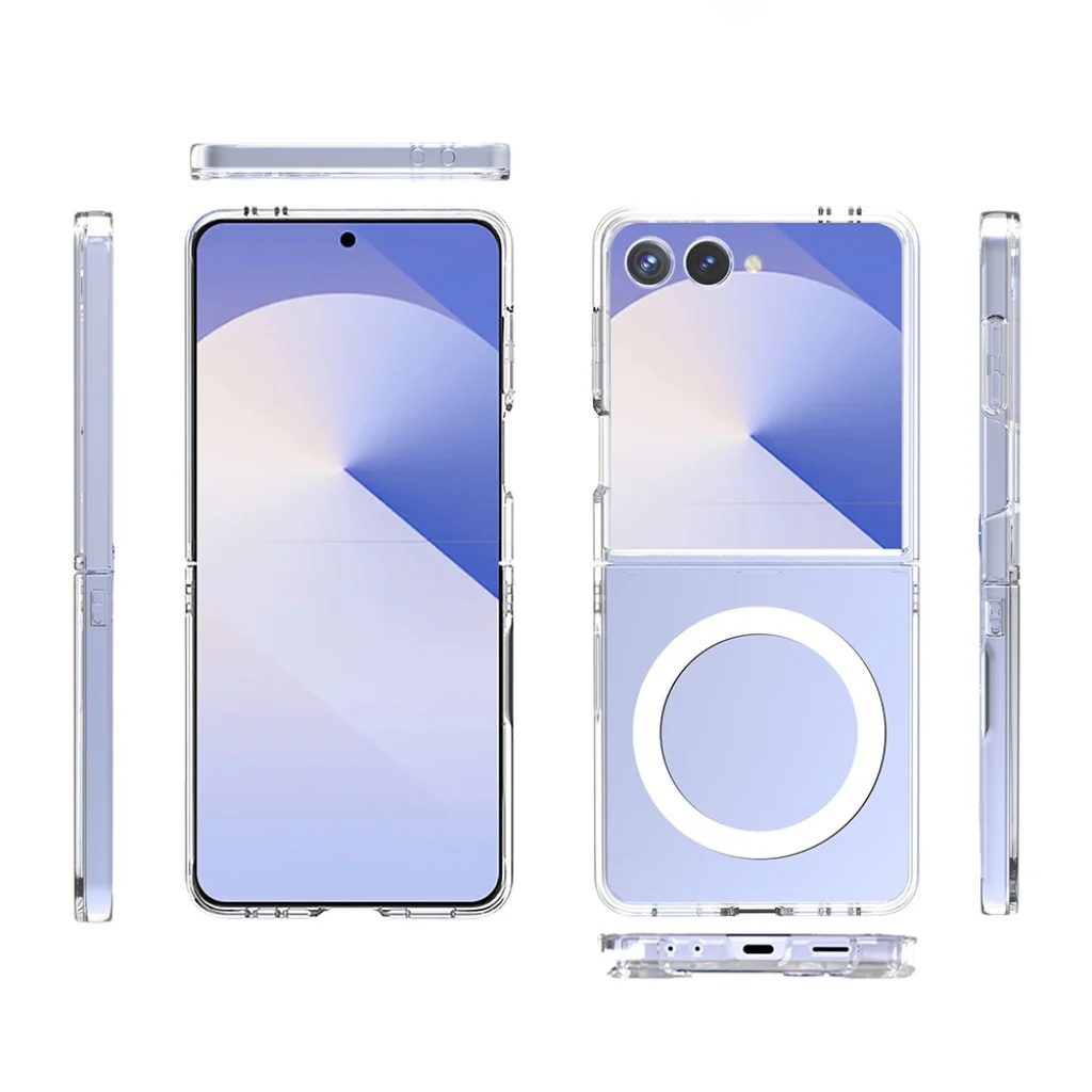 Samsung Z Flip 7 Kılıf M-safe Şarj Özellikli Şeffaf Sert PC Embos Kapak
