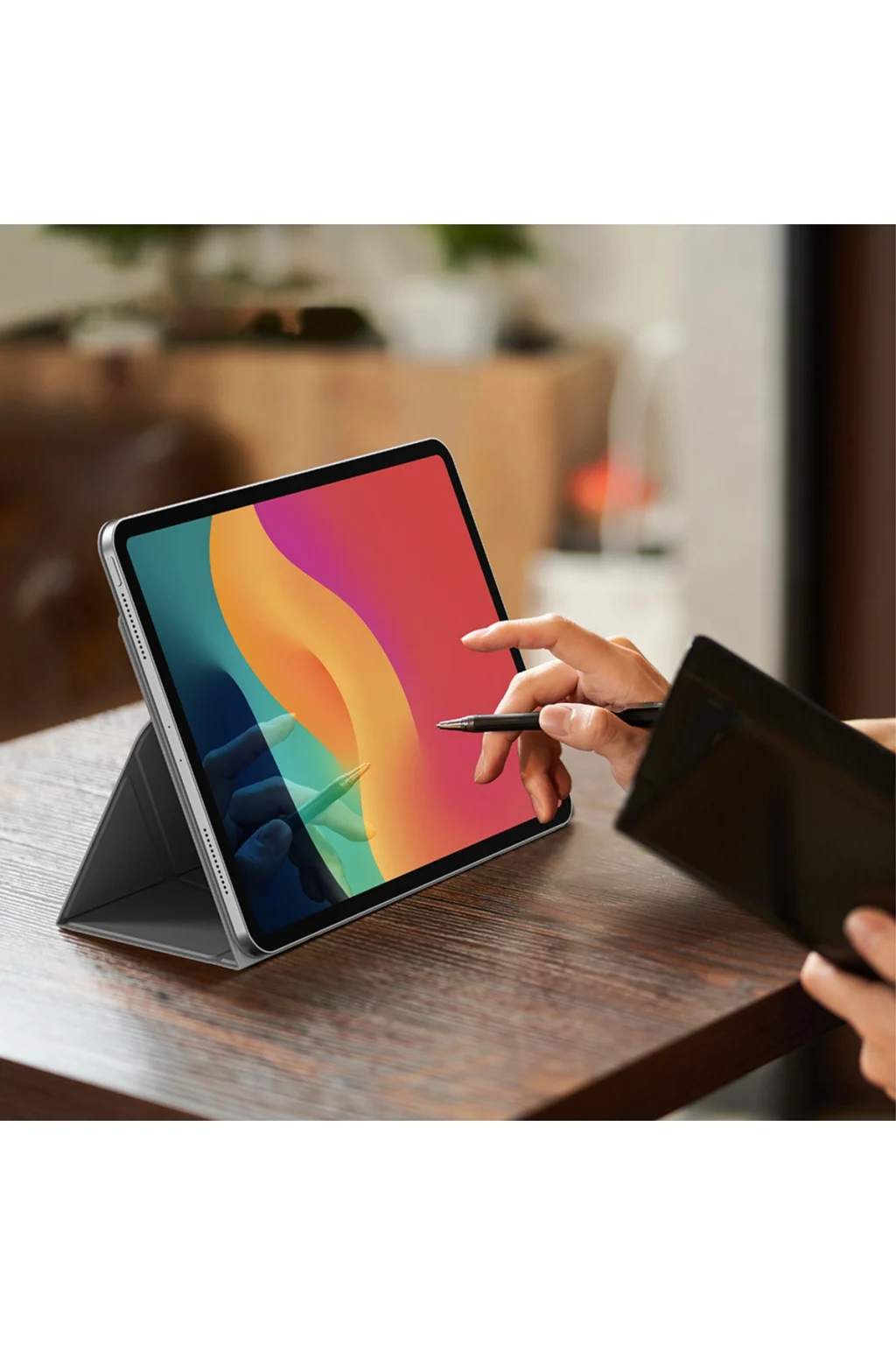 Amazingthing Matte Pro Mag Folio, günlük yaşamın her anında şıklığı ve fonksiyonelliği bir araya getiriyor. Katlanabilir yapısı, cihazınızı hem yatay hem de dikey pozisyonda kullanmanıza olanak tanır. Bu özellik, ister video izlerken, ister iş toplantılarında not alırken veya dijital sanat eserlerinizi oluştururken size konfor sunar. İnce ve minimalist tasarımı sayesinde iPad’inizin estetik görünümünü tamamlar.