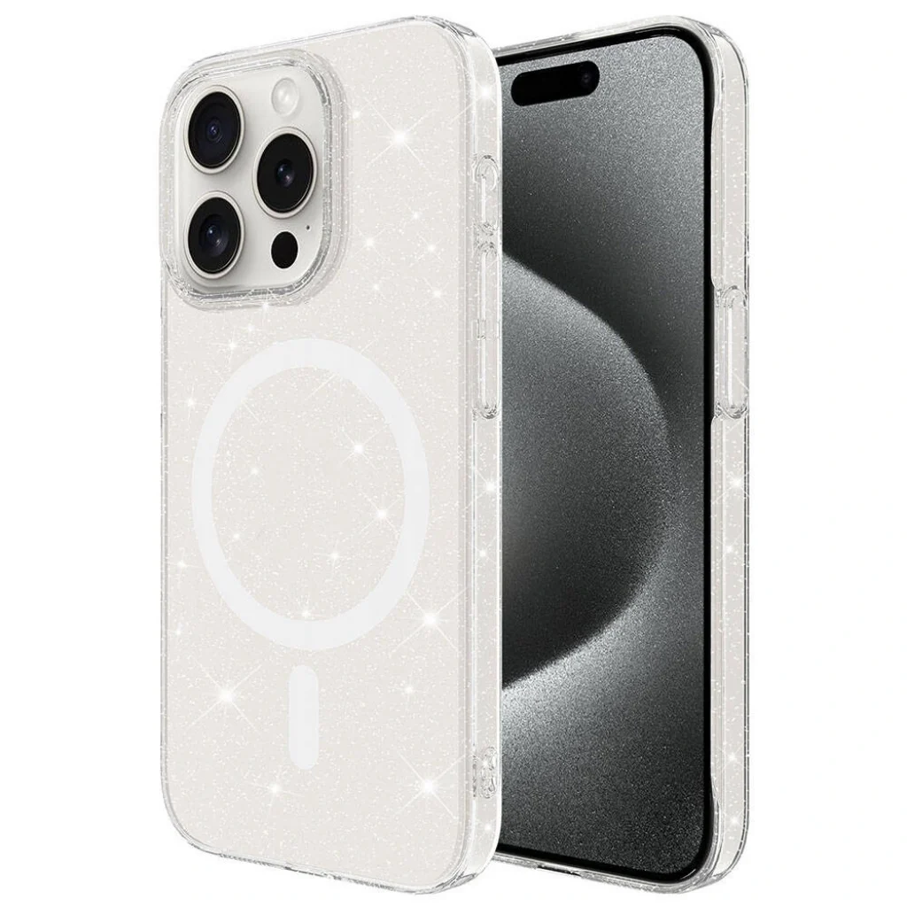 iPhone 15 Pro Kılıf M-safe Şarj Özellikli Simli Şeffaf Arka Yüzey Erdos Silikon Kapak