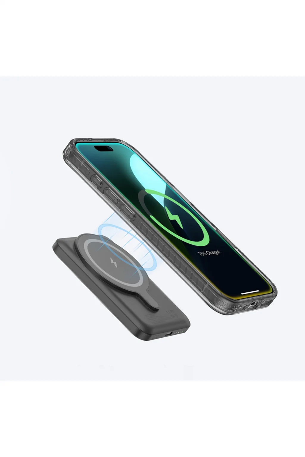 Kılıfın dahili FlexStand özelliği, 90°'ye kadar açılabilir stand mekanizmasıyla dikey ve yatay kullanımda eller serbest bir deneyim sunar. Bu işlev, video izleme, görüntülü görüşme veya çalışma sırasında büyük kolaylık sağlar. Manyetik tutma halkası ise hem ergonomik tutuş sağlar hem de MagSafe aksesuarlarla mükemmel uyum gösterir.