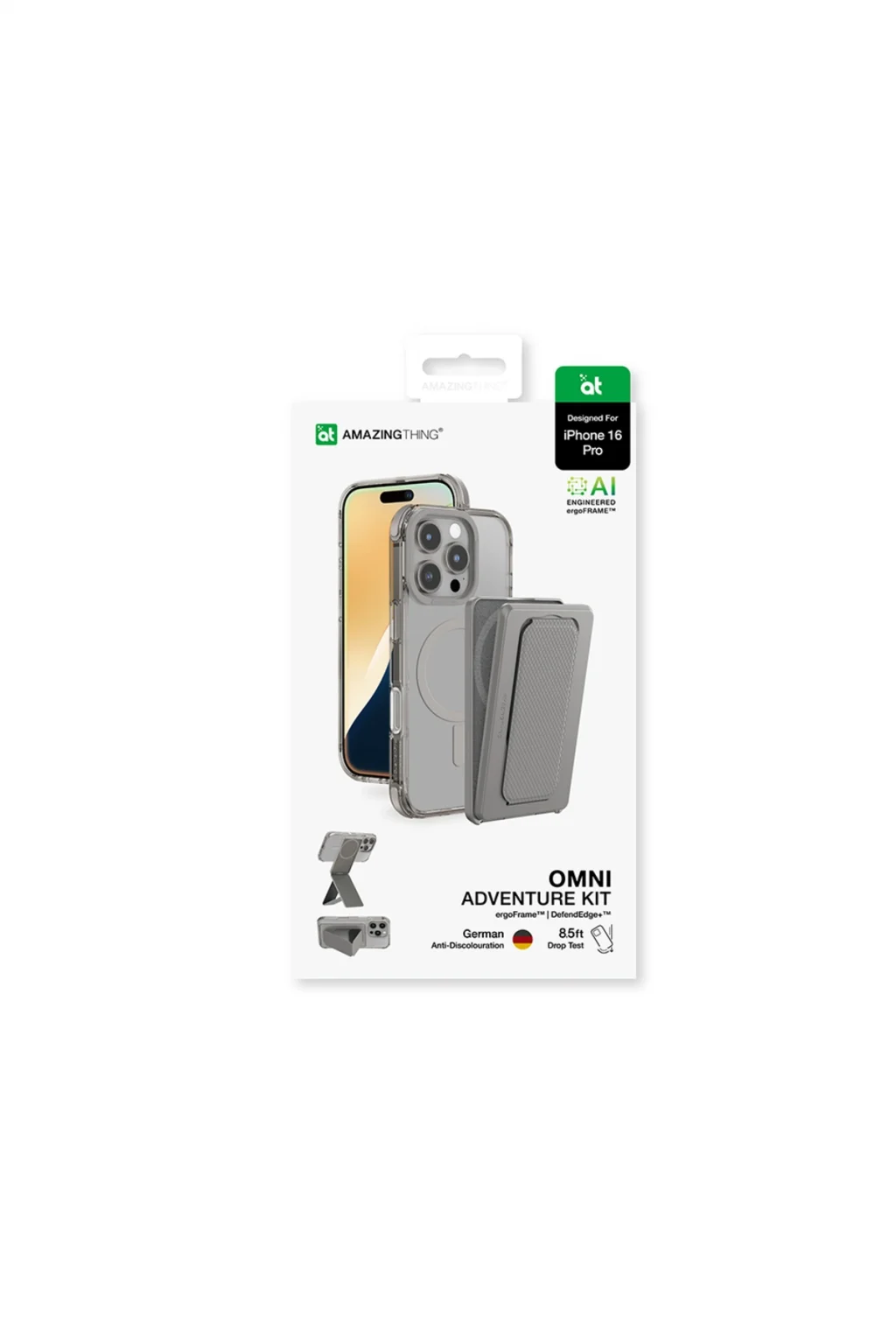 iPhone 16 Pro Kılıf Magsafe Özellikli Standlı Kartlıklı Set Amazingthing Omni Adventure Serisi Gri