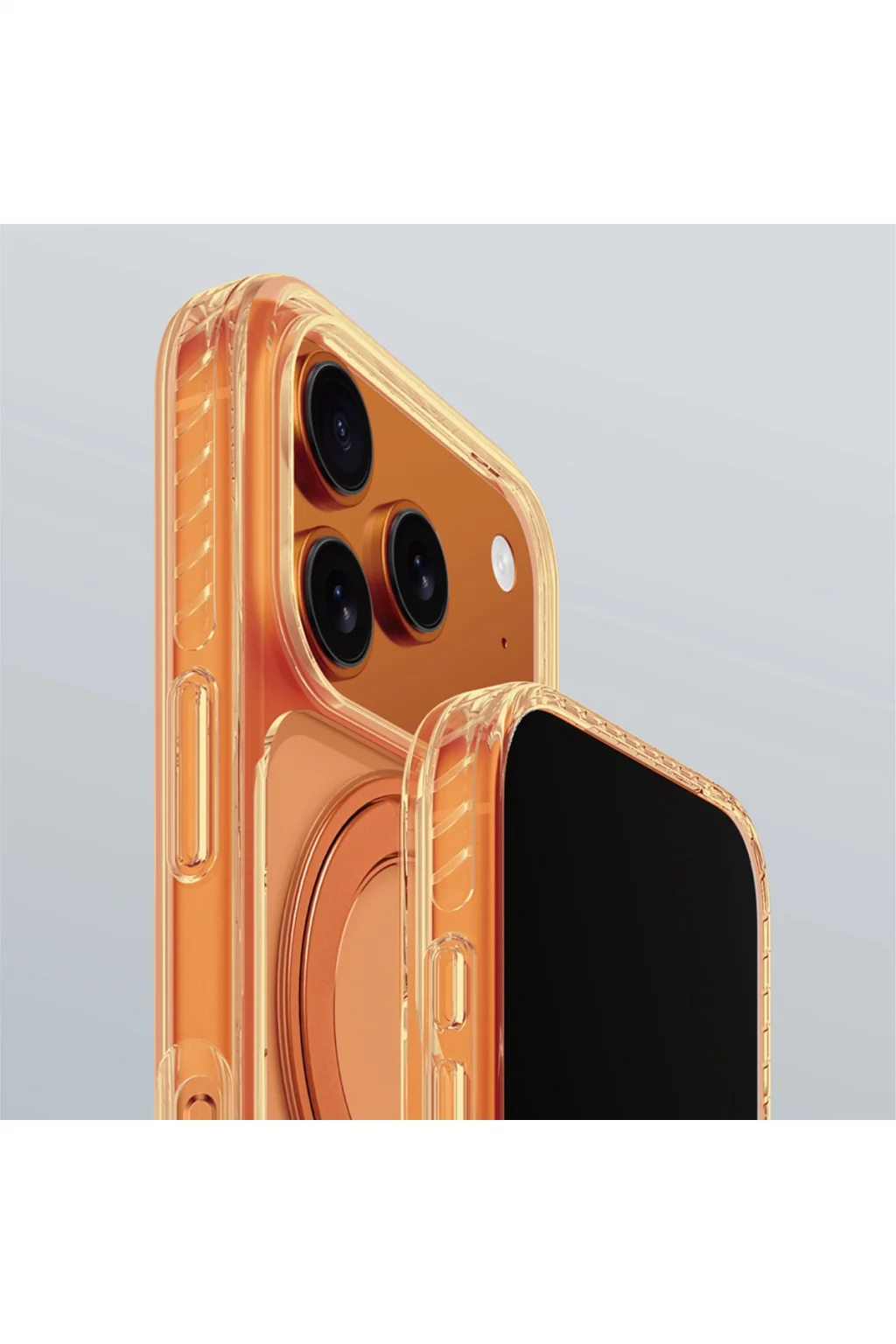iPhone 17 Pro Max Uyumlu Kılıf M-Safeli Airbag Standlı Titan Pro MagSpin Kapak Turuncu