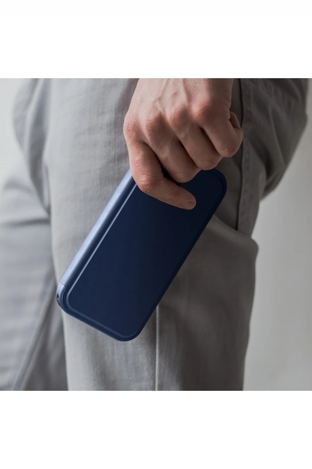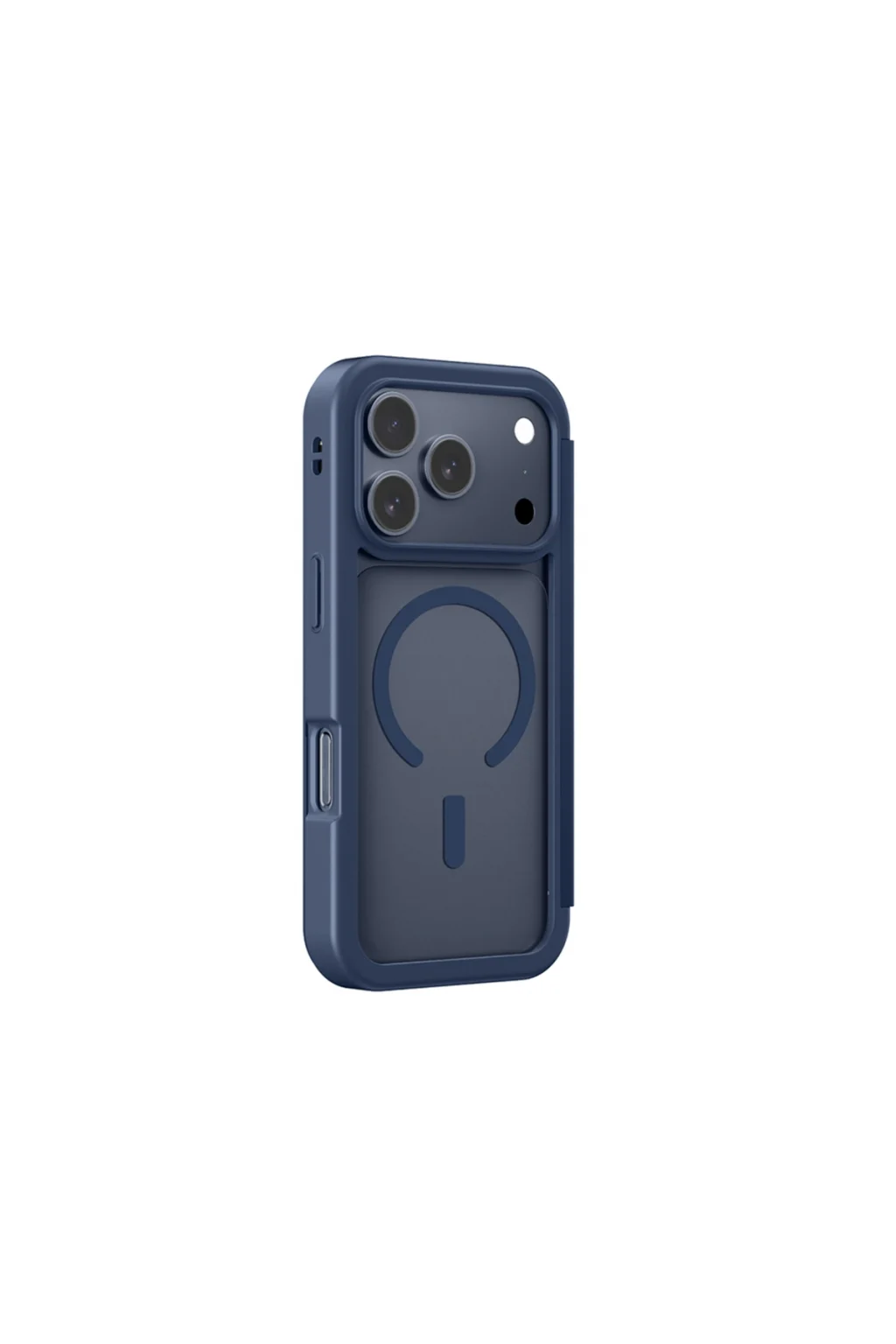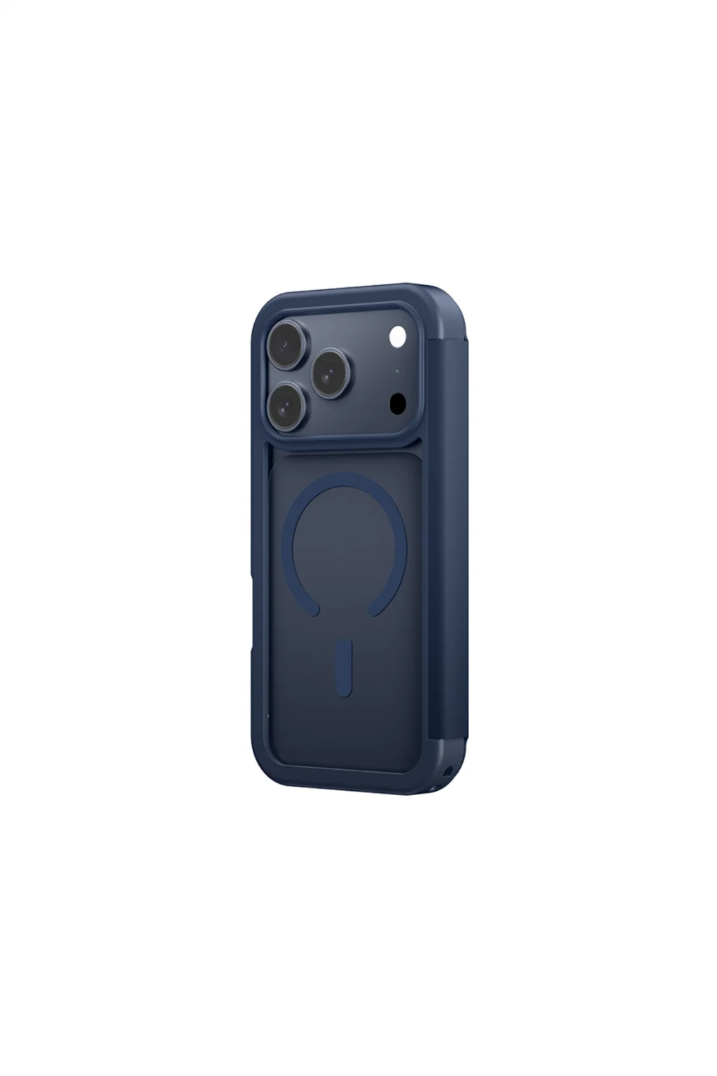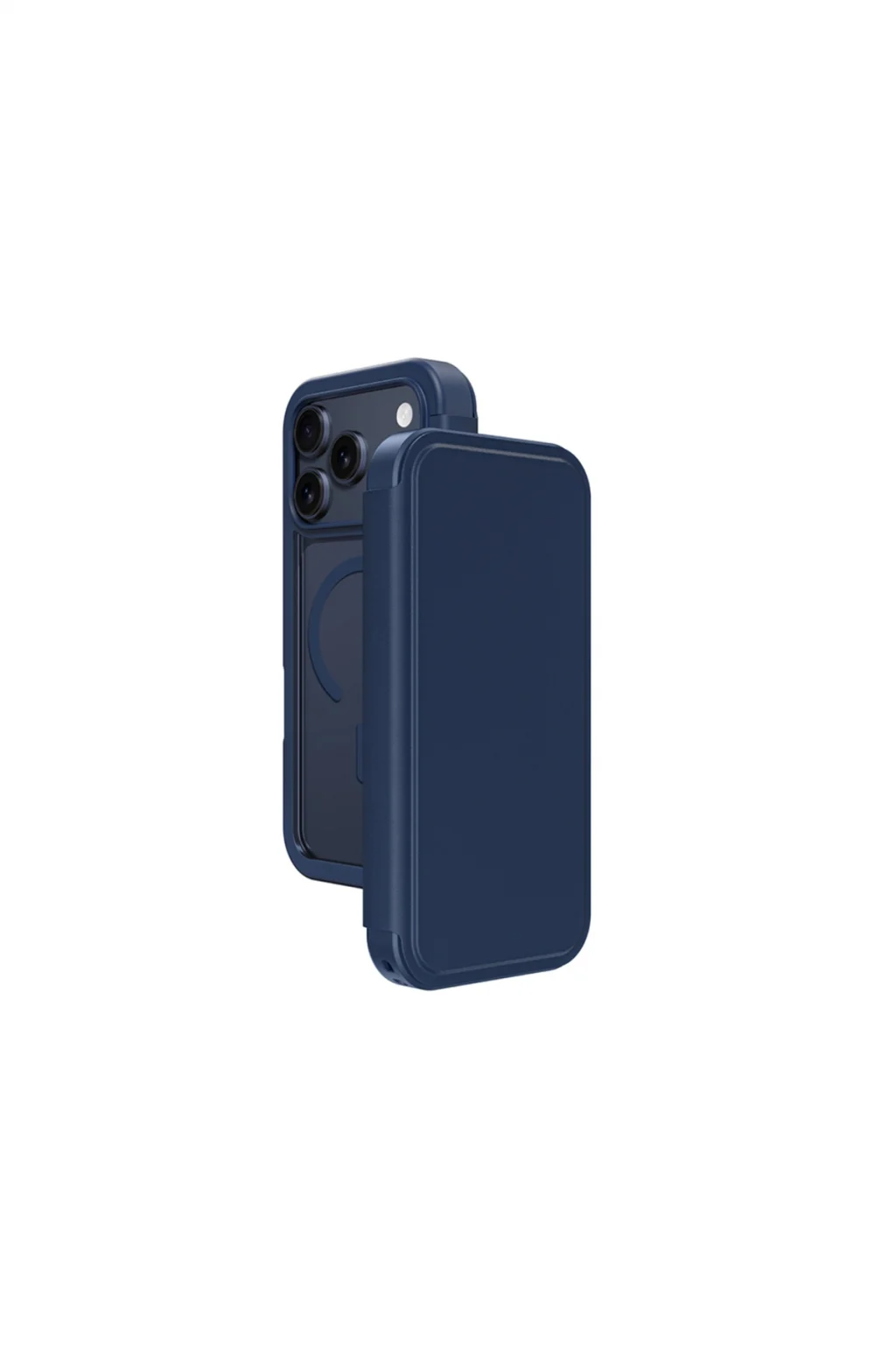 iPhone 17 Pro Max Uyumlu PU Kartlıklı Kapaklı Glamour Foilo Serisi Kılıf Mavi