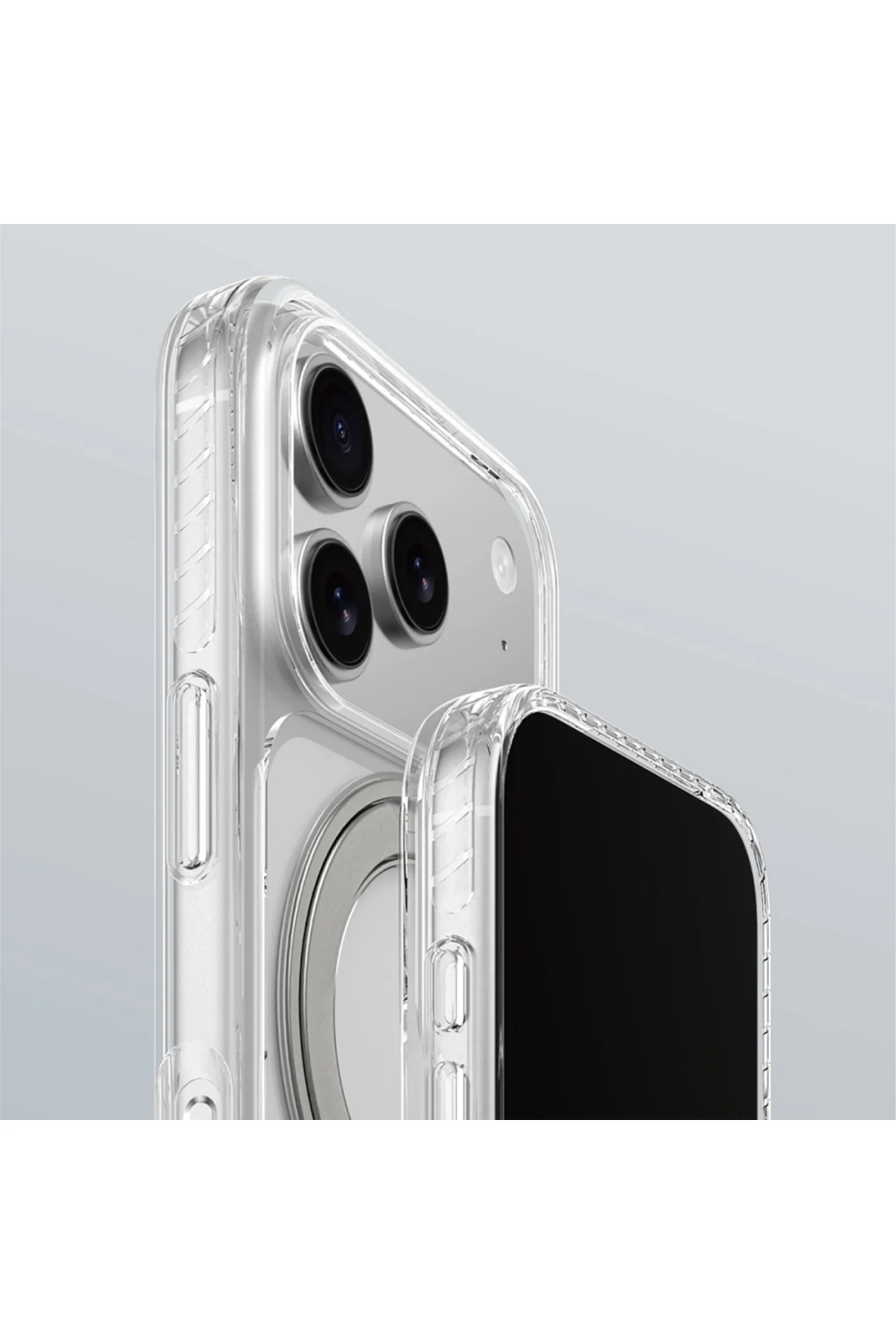 iPhone 17 Pro Uyumlu Kılıf M-Safeli Airbag Standlı Titan Pro MagSpin Kapak Şeffaf