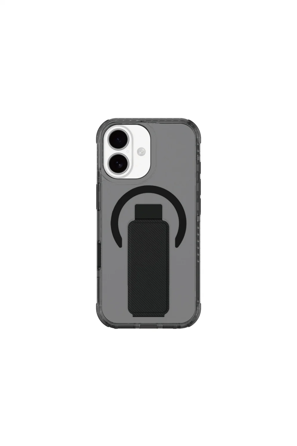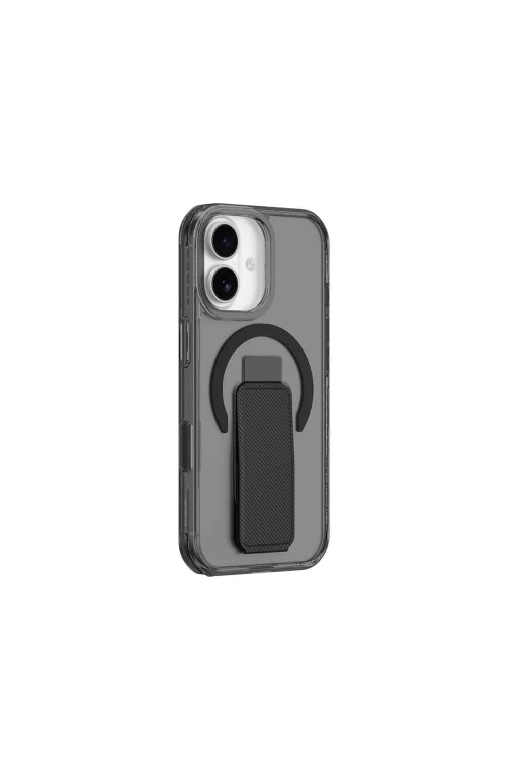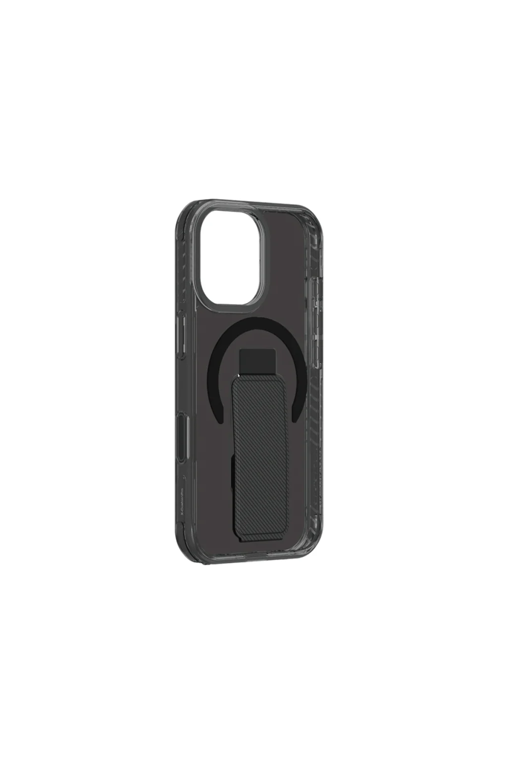 Kılıfın dahili FlexStand özelliği, 90°'ye kadar açılabilir stand mekanizmasıyla dikey ve yatay kullanımda eller serbest bir deneyim sunar. Bu işlev, video izleme, görüntülü görüşme veya çalışma sırasında büyük kolaylık sağlar. Manyetik tutma halkası ise hem ergonomik tutuş sağlar hem de MagSafe aksesuarlarla mükemmel uyum gösterir.