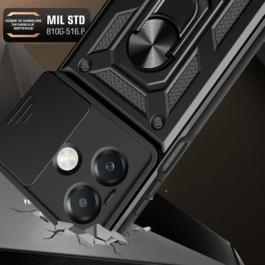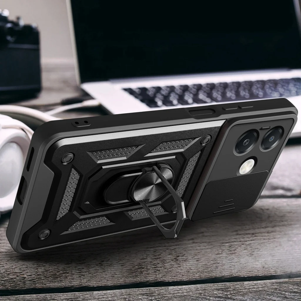 Oppo A3x 4G Kılıf Magnetik Standlı Kamera Korumalı Sürgülü Vega Kapak