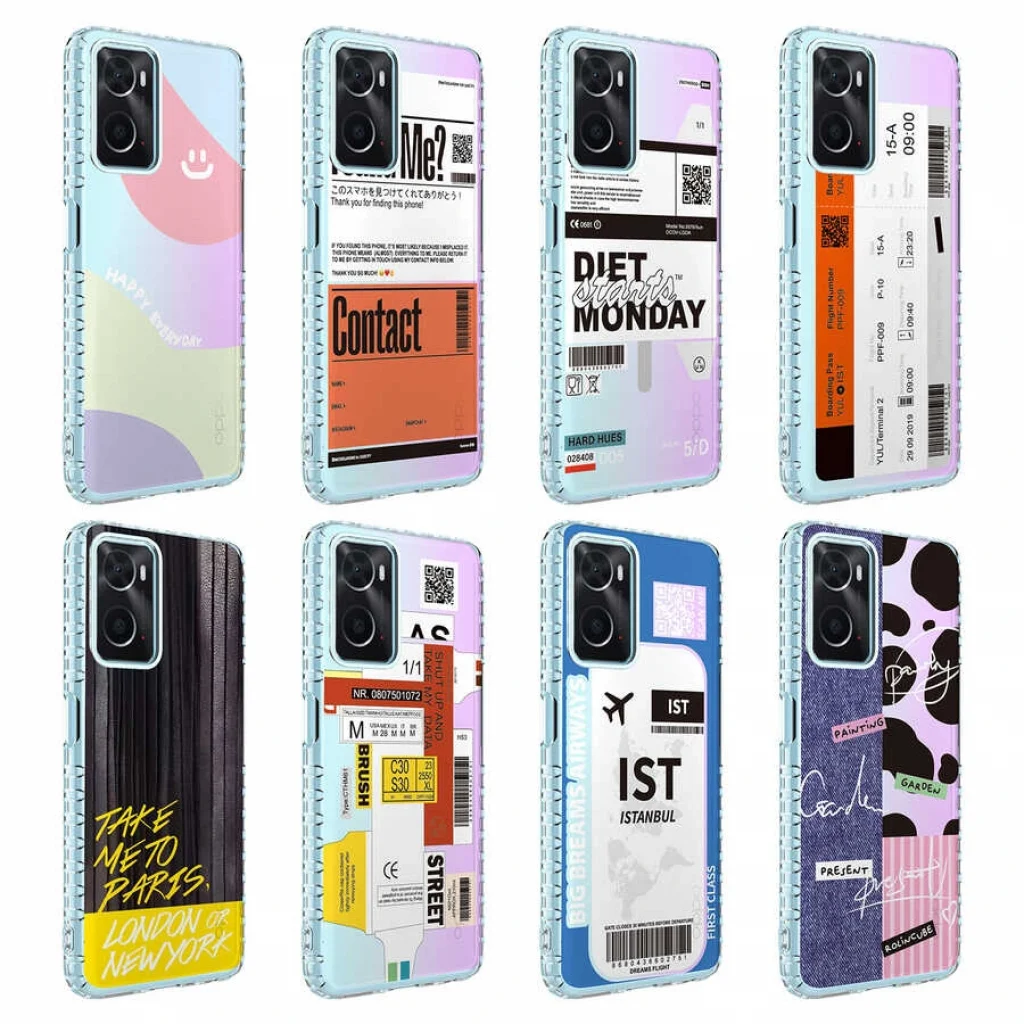 Oppo A96 4G Kılıf Airbag Kenarlı Renkli Desenli Silikon Elegans Kapak