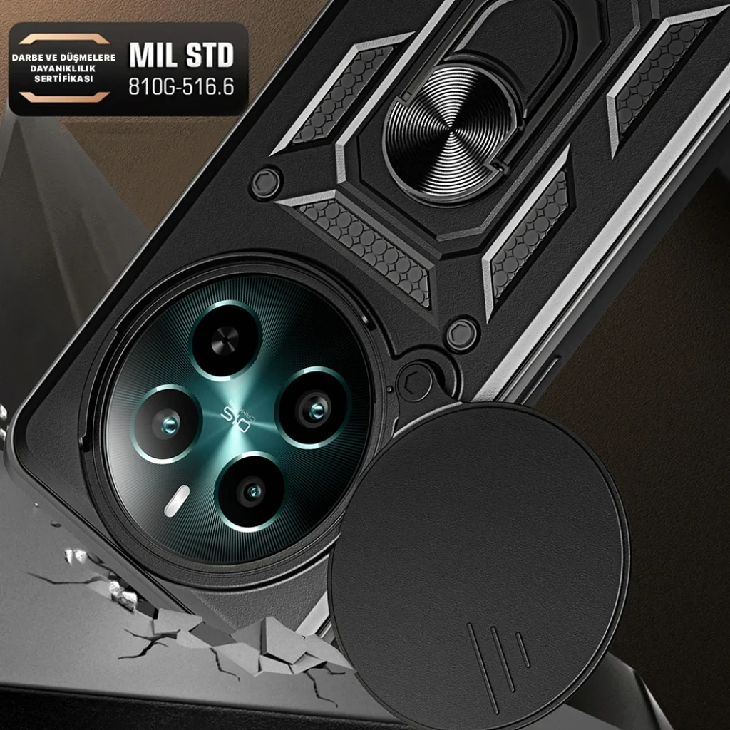 Realme 12 Plus Kılıf Magnetik Standlı Kamera Korumalı Sürgülü Vega Kapak