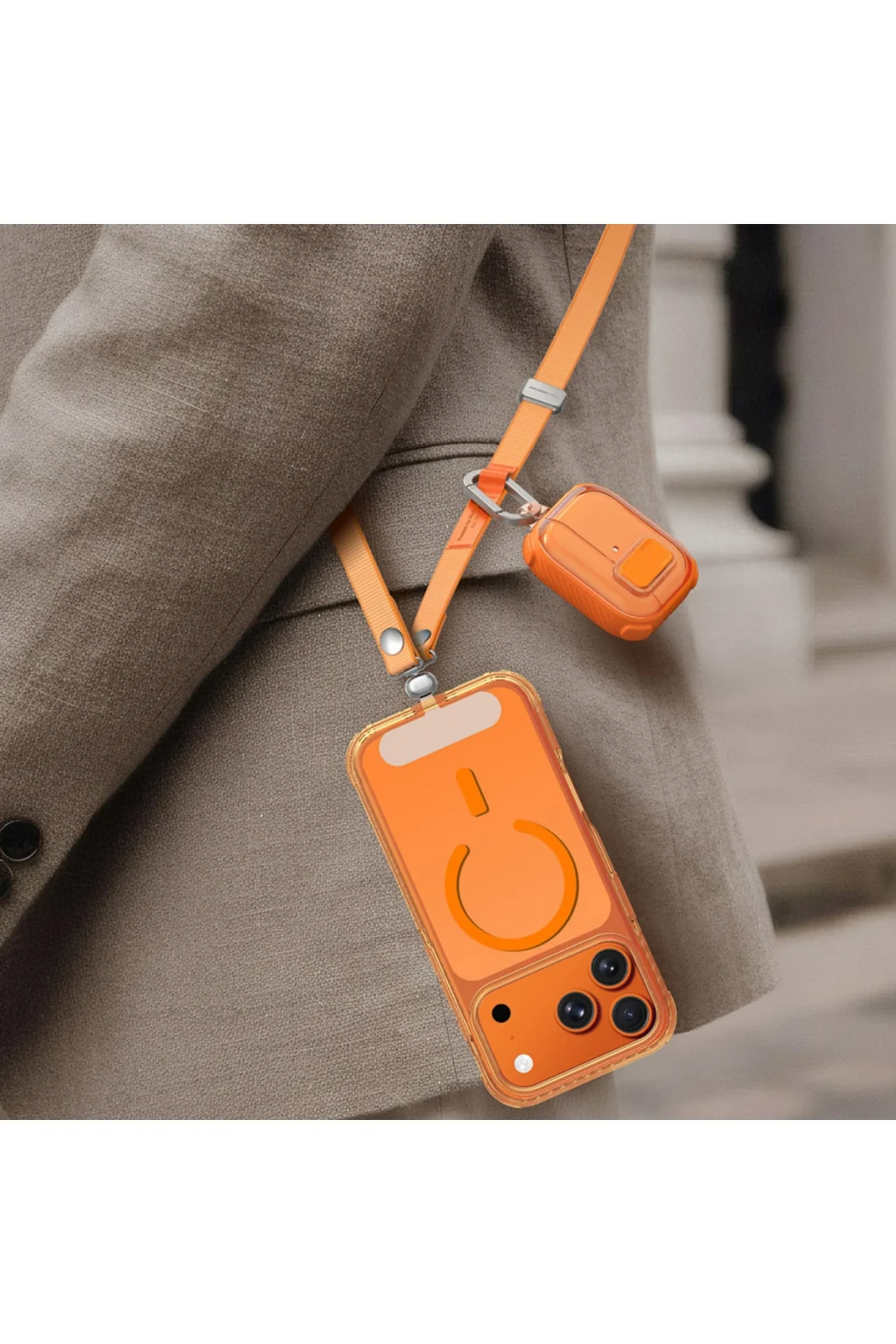Titan Serisi Ayarlanabilir Manyetik Tasarımlı Telefon ve AirPods Boyun Askı İpi Turuncu