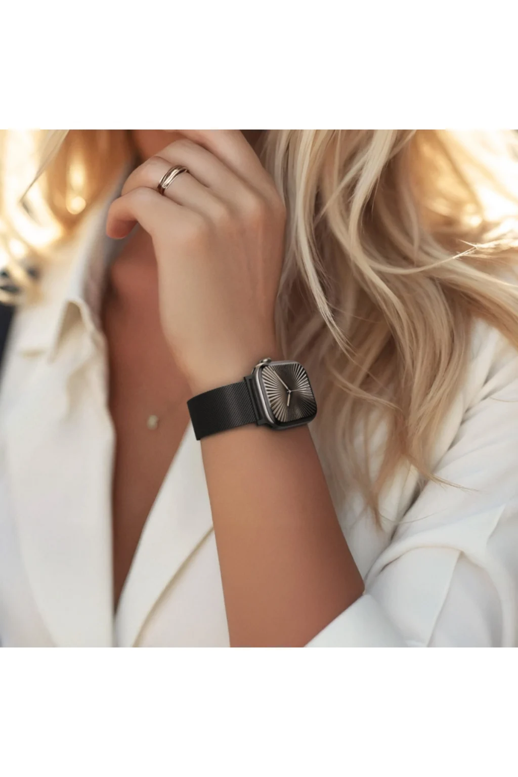 İleri teknolojiyle işlenen yüksek kaliteli metal bileşenleri, kordonun hem estetik hem de fonksiyonel olmasını sağlar. Pürüzsüz ve mat dokusu, gün boyu konfor sunarken, bileğinize mükemmel şekilde oturacak şekilde tasarlanmıştır. Kolay ayarlanabilir bağlantıları sayesinde bileğinize tam uyum sağlar ve kullanım esnasında rahatlık sunar.