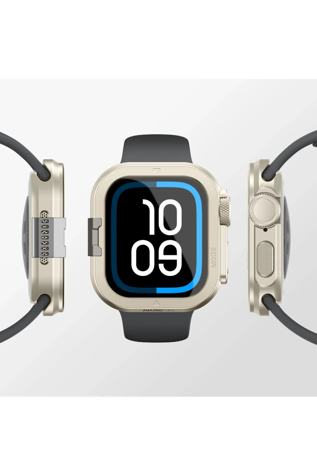 Sadece koruma değil, aynı zamanda estetik de sunan bu metal kasa, minimal çizgileri ve farklı renk seçenekleriyle şıklığı bileğinize taşıyor. Düğmelere tam uyumlu özel kesimi sayesinde kullanım konforunu bozmazken, ekran görüş alanını da engellemez. Şık görünümünü bozmadan saatinizi rahatça şarj edebilirsiniz.