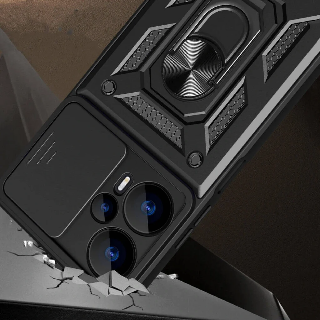 Xiaomi Poco F5 Kılıf Magnetik Standlı Kamera Korumalı Sürgülü Vega Kapak