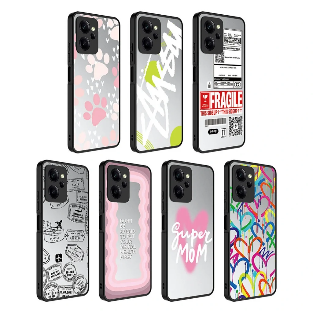 Xiaomi Poco X5 Pro Kılıf Aynalı Desenli Kamera Korumalı Parlak Mirror Kapak